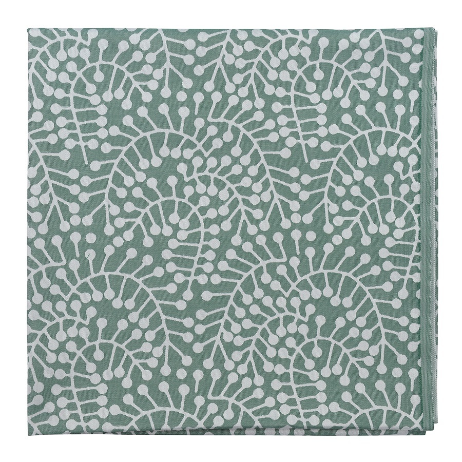 "Скатерть из хлопка зеленого цвета с жаккардовым рисунком Спелая смородина из коллекции Scandinavian touch внесет разнообразие в повседневную и неформальную праздничную сервировку. Изделие с авторским дизайном, разработанным одним из ведущих финских агентств, органично впишется в любой современный интерьер. Модель выполнена из плотного хлопка - прочного материала, который хорошо впитывает влагу и не деформируется после множества стирок.
