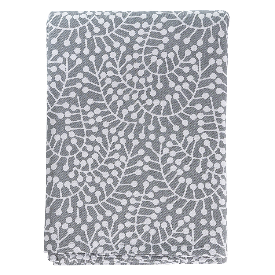 "Скатерть темно-серого цвета с принтом Спелая Смородина из коллекции Scandinavian touch внесет разнообразие в повседневную и неформальную праздничную сервировку. Изделие с авторским дизайном, разработанным одним из ведущих финских агентств, органично впишется в любой современный интерьер. Модель выполнена из плотного хлопка - прочного материала, который хорошо впитывает влагу и не деформируется после множества стирок.