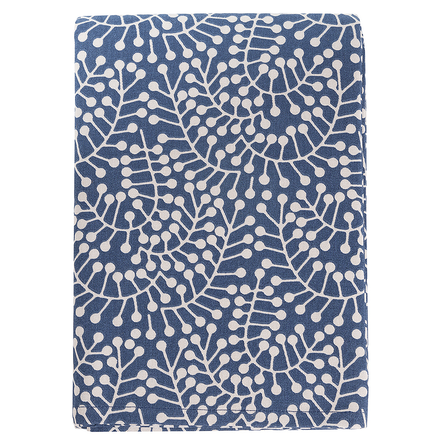 "Скатерть темно-синего цвета с принтом Спелая Смородина из коллекции Scandinavian touch внесет разнообразие в повседневную и неформальную праздничную сервировку. Изделие с авторским дизайном, разработанным одним из ведущих финских агентств, органично впишется в любой современный интерьер. Модель выполнена из плотного хлопка - прочного материала, который хорошо впитывает влагу и не деформируется после множества стирок.