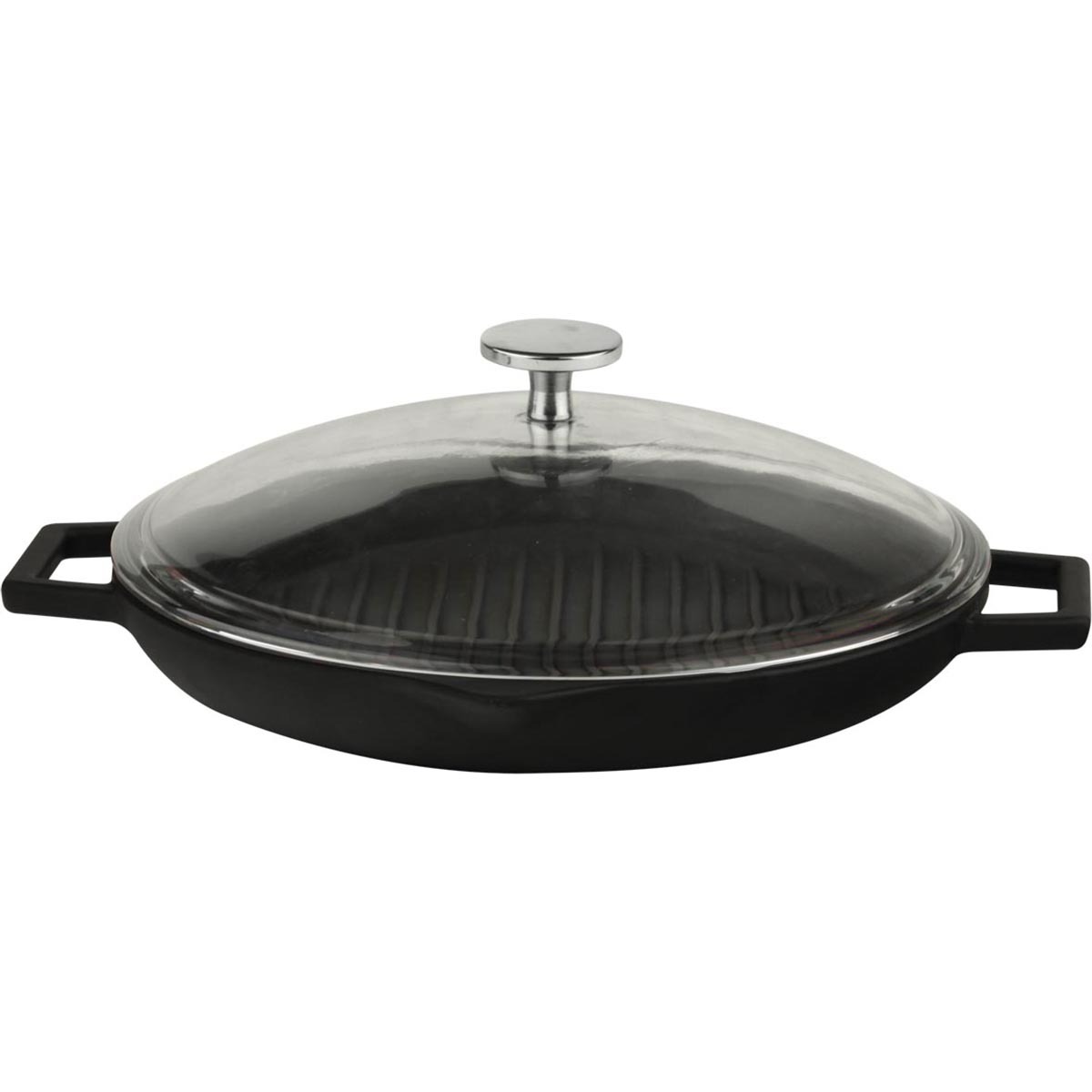 Сковорода гриль круглая с 2мя ручками и стеклянной крышкой (ø)26cm.