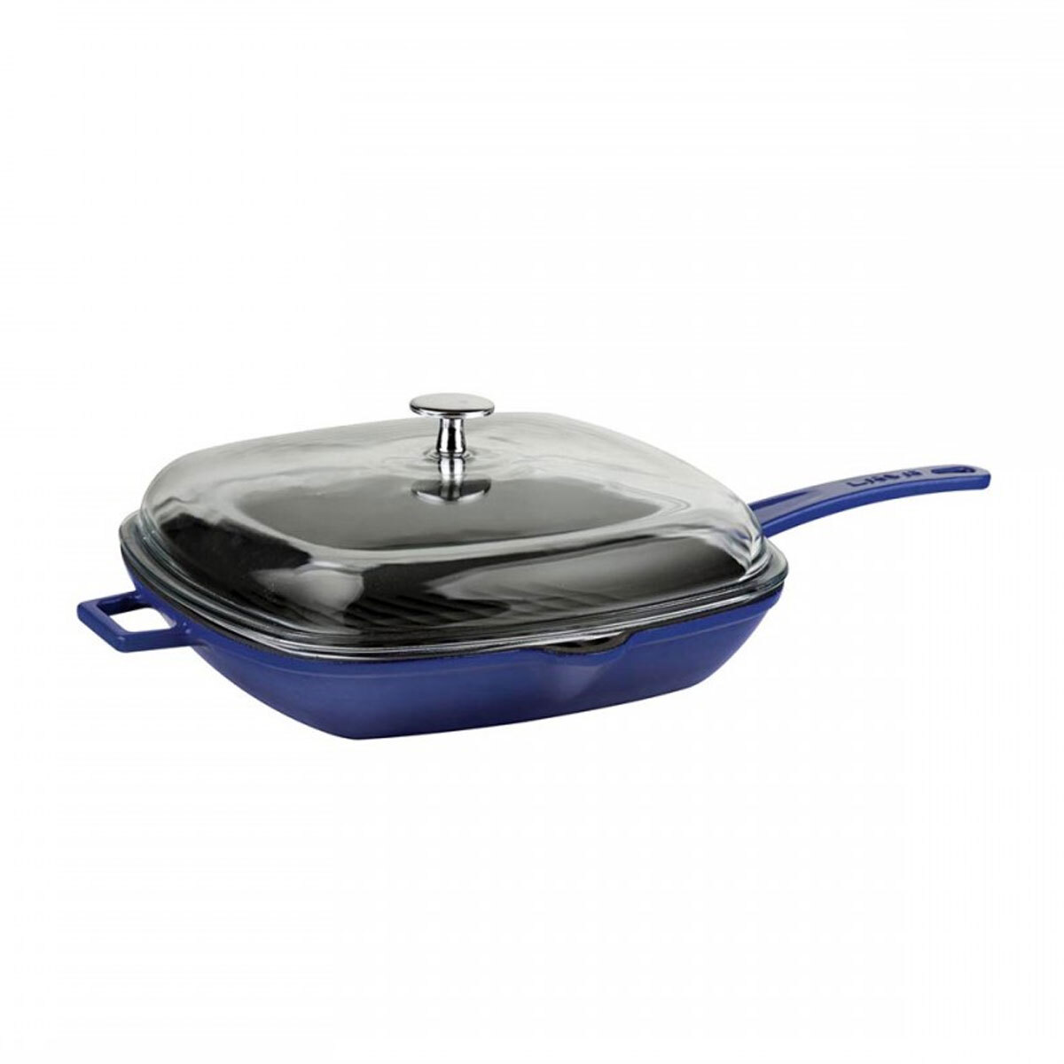 Сковорода гриль квадратная с литой ручкой и стеклянной крышкой 26x26cm.