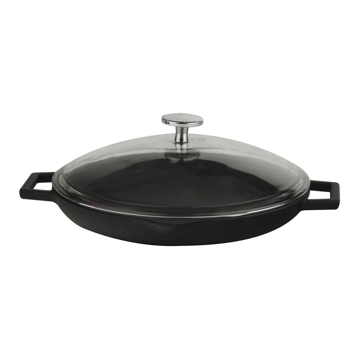 Сковорода гриль с двумя диаметрально расположенными ручками и стеклянной крышкой (ø)26cm.