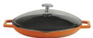Сковорода с 2-мя ручками, d 30 см, со стеклянной крышкой, чугун, цвет оранжевый