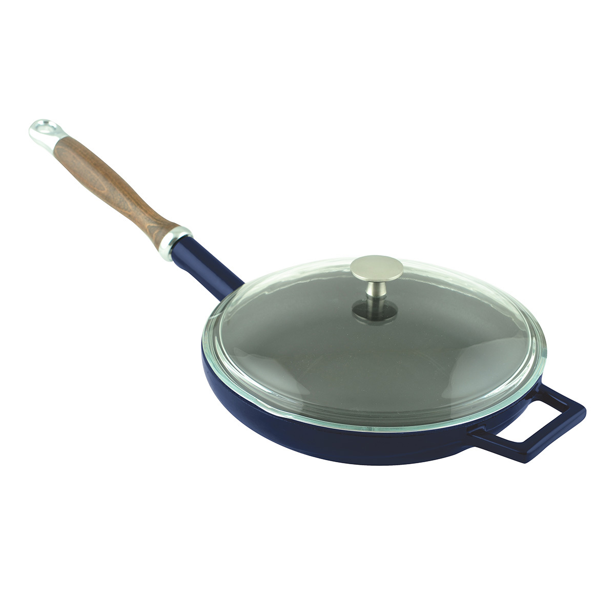 Сковорода с деревянной ручкой и стеклянной крышкой (ø)28cm.