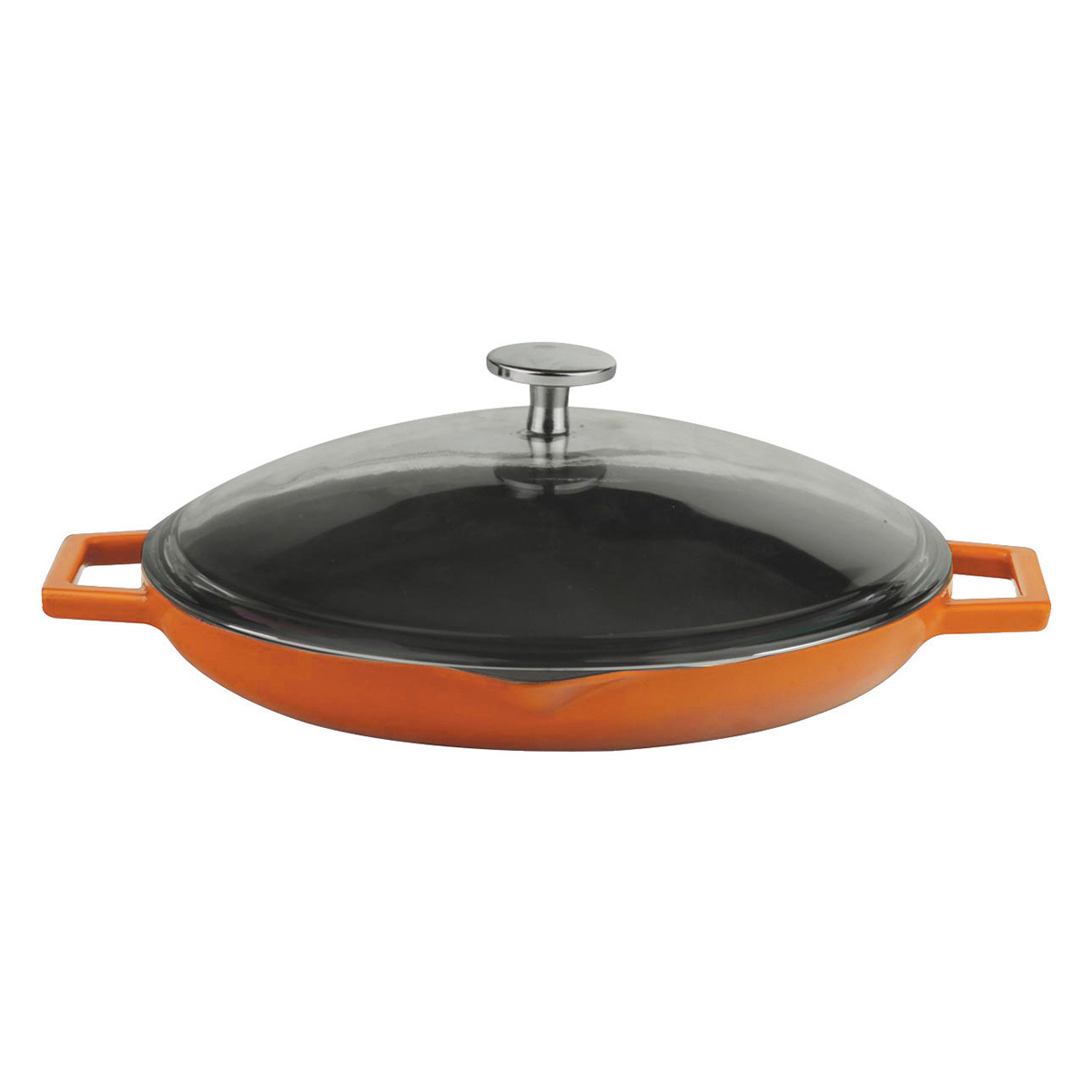 Сковорода с двумя диаметрально расположенными ручками и стеклянной крышкой (ø)30cm.