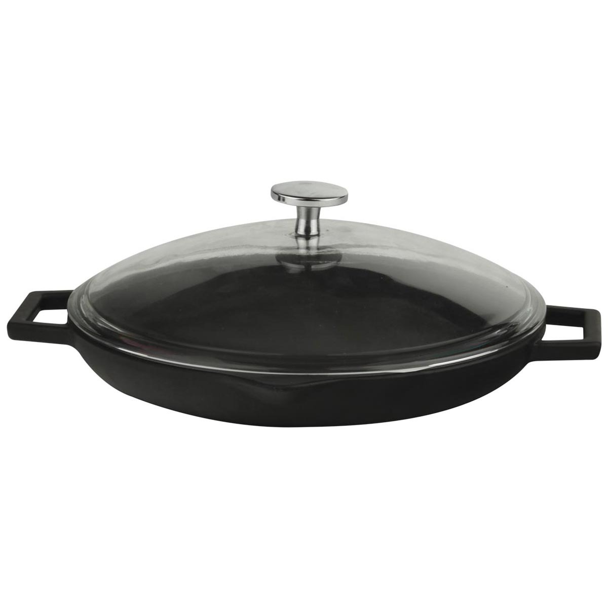 Сковорода с двумя диаметрально расположенными ручками и стеклянной крышкой(ø)30cm.