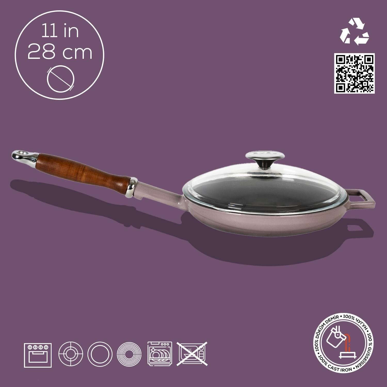 Сковорода со стеклянной крышкой и деревянной ручкой, d 28 см, W=29 см L=58 см H=11,5 см, цвет фиолетовый