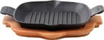 Сковородв квадратная с двумя ручками и деревянным подносом 26x26 cm.