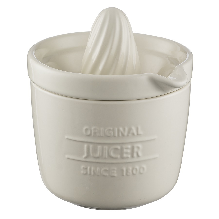 Свежевыжатый сок собирается в контейнер, а изогнутый носик позволяет удобно переливать жидкость в стакан объемом 550 мл. Изделие выполнено из каменной керамики, которая не впитывает запахи и сохраняет натуральный вкус напитка.