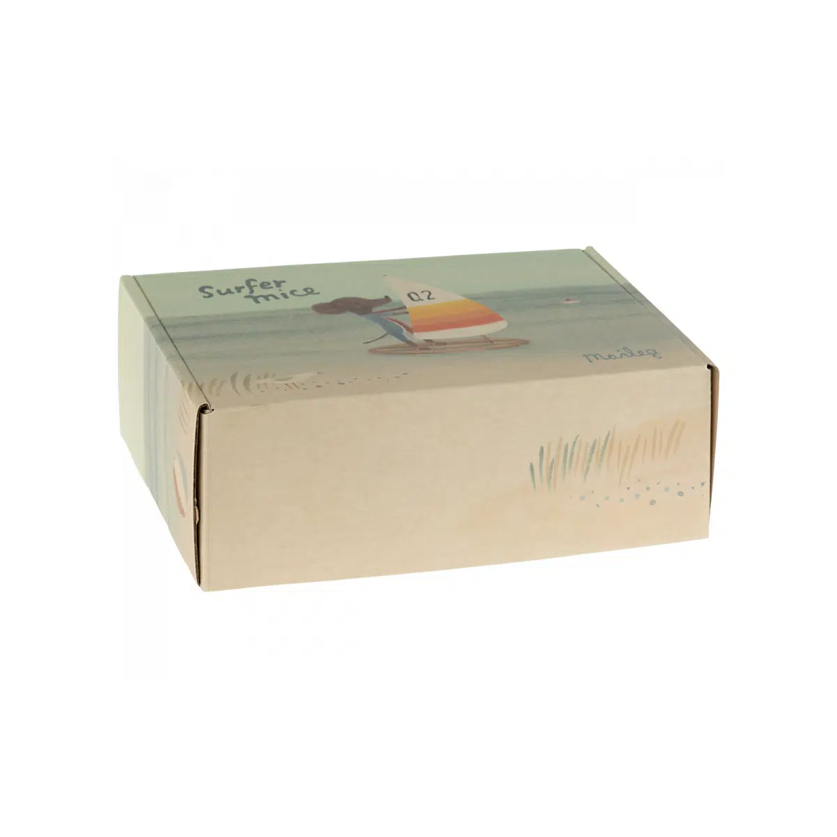 Лови волну со старшим братом мышкой-серфингистом Maileg! На нем костюм для плавания и он катается на деревянной доске для серфинга. В руках мыши спрятаны магниты, а в парусе есть горизонтальный металлический стержень, за который она может держаться, пока плывет по волне. Игрушка изготовлена из хлопка, красивого, приятного на ощупь, безопасного даже для совсем маленьких детей. Мордочка мышки аккуратно вышита. Набор упакован в очаровательную коробку. Изделия Maileg прекрасно сочетаются, образуя целые коллекции. Это вневременные игрушки доставят радость не только вашему ребенку, но и внуку. Отличный подарок для людей, ценящих красоту и высокое качество вещей.