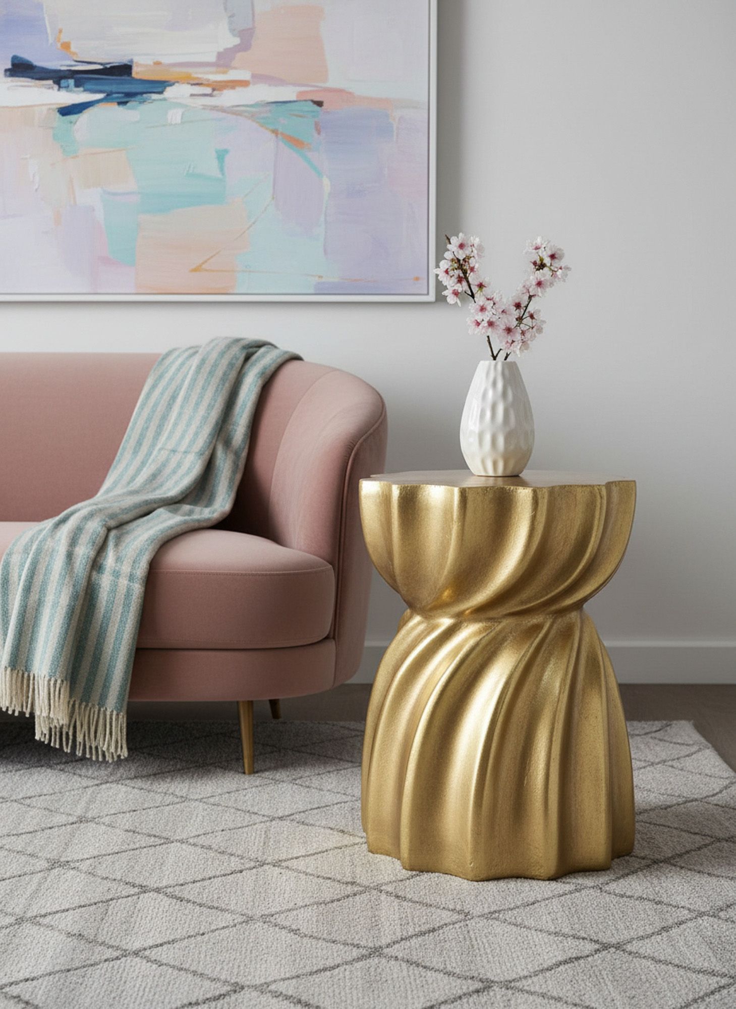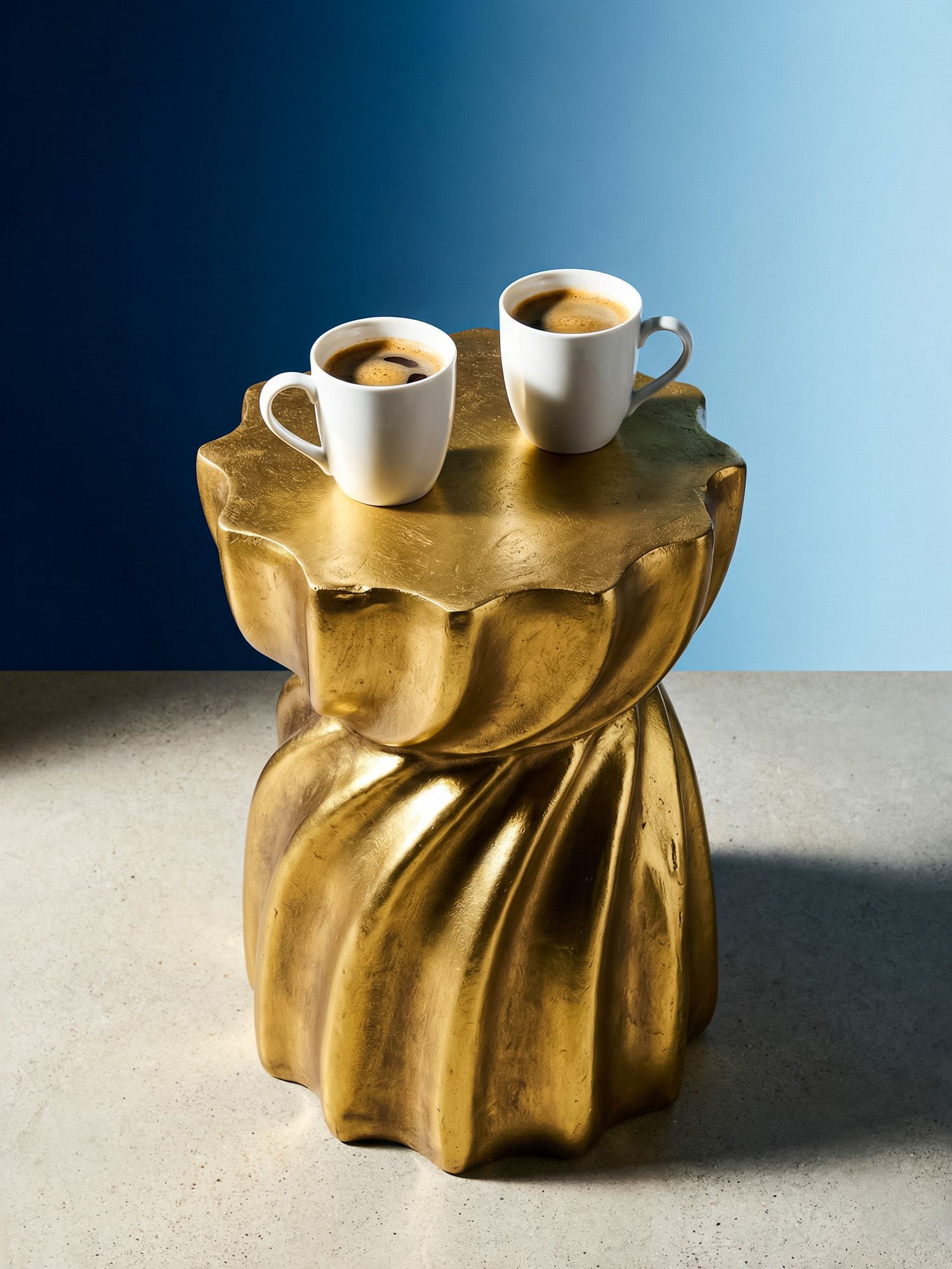 Оживите свое пространство при помощи этого акцентного столика. Многогранная текстура и золотистый блеск делает этот предмет центром внимания всего интерьера. Изделие можно использовать в качестве кофейного столика, подставки для растений или других любимых вещей.