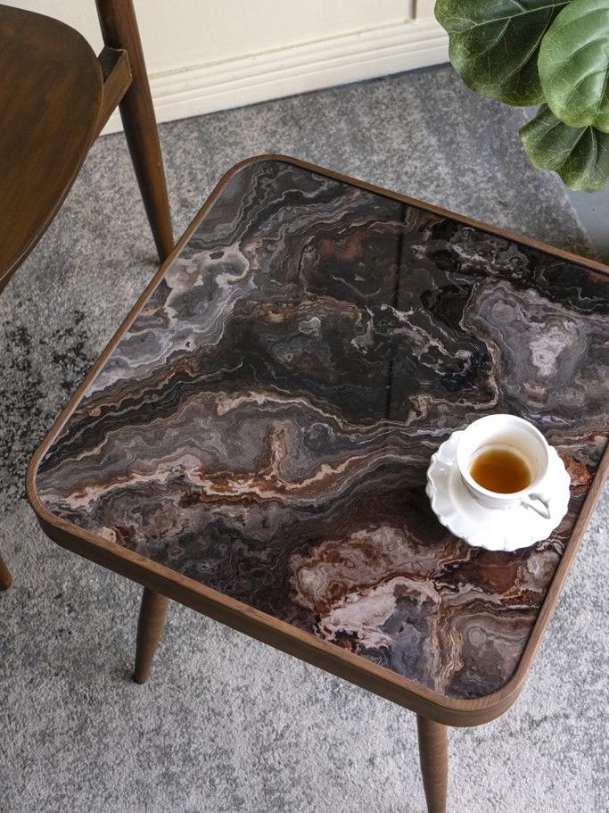 Акцентный столик со стеклянной столешницей, с эффектным дизайном под ночное небо со звездами, может служить приставным столиком, подставкой для демонстрации любимых предметов или цветочных растений в кашпо, придавая любому пространству нотку природного очарования. Изящные линии и естественная цветовая гамма позволяют этому столу гармонично сочетаться с такими стилями, как арт-деко и модерн, благодаря чему столик легко впишется в любой интерьер.