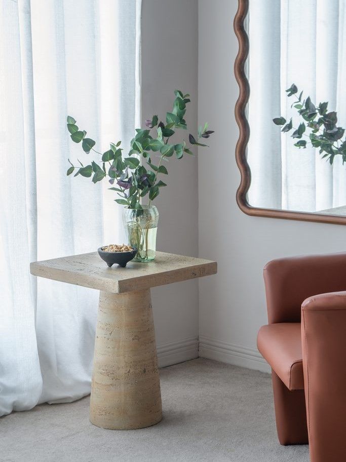 Замечательный предмет мебели, представляющий собой обновленную версию классического приставного столика, имеет квадратную столешницу, текстурированную кремовую отделку и узкое основание. Столик настолько привлекателен и универсален, что будет уместен в гостиной, спальной комнате или прихожей, органично дополняя самые разные стили интерьера.