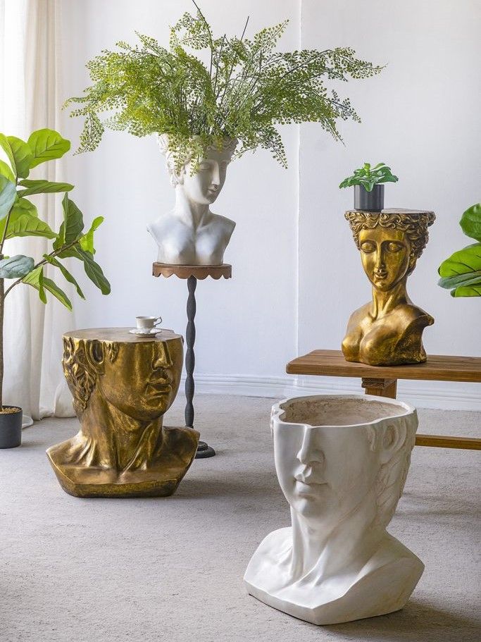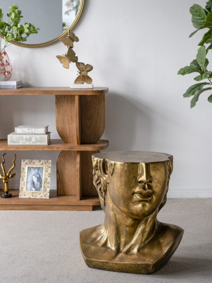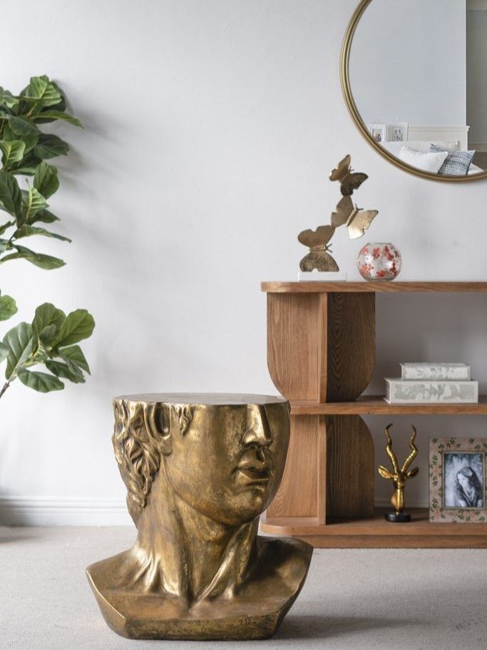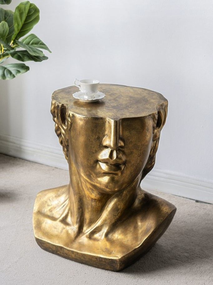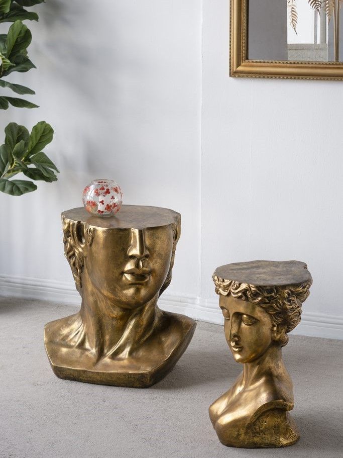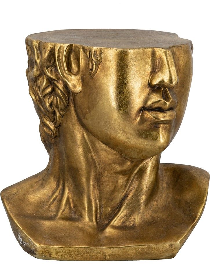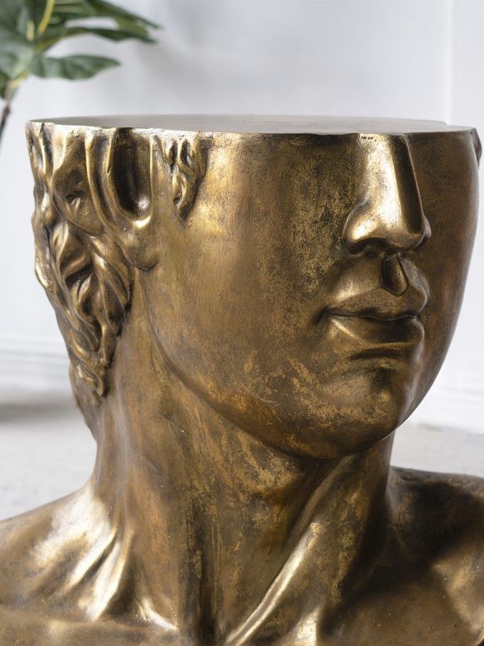 Элегантный интерьерный столик, вдохновленный классическими образами Древней Греции, искусно выполнен в виде мужского бюста, с богатой отделкой золотистыми оттенками. Изысканная неоклассическая форма и насыщенный оттенок погружают к гармонии, ясности, строгости и монументальности, сочетаясь с традиционными, современными, индустриальными и эклектичными стилями, при этом легко вписываясь в любой интерьер вашего дома.