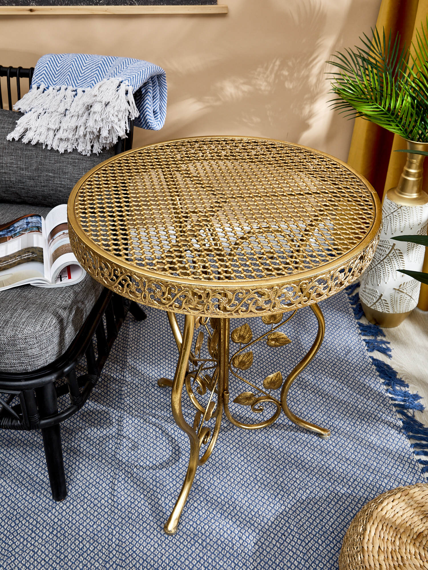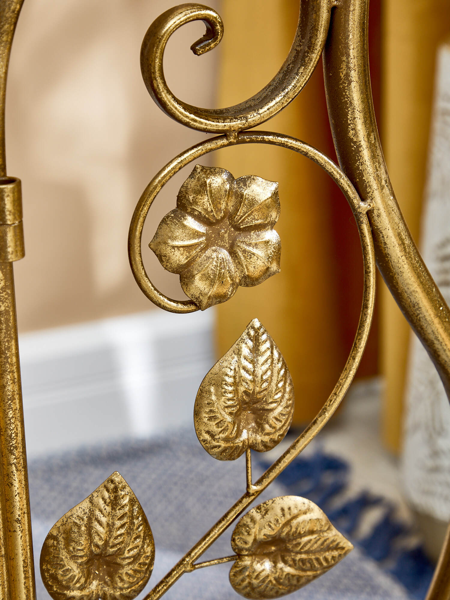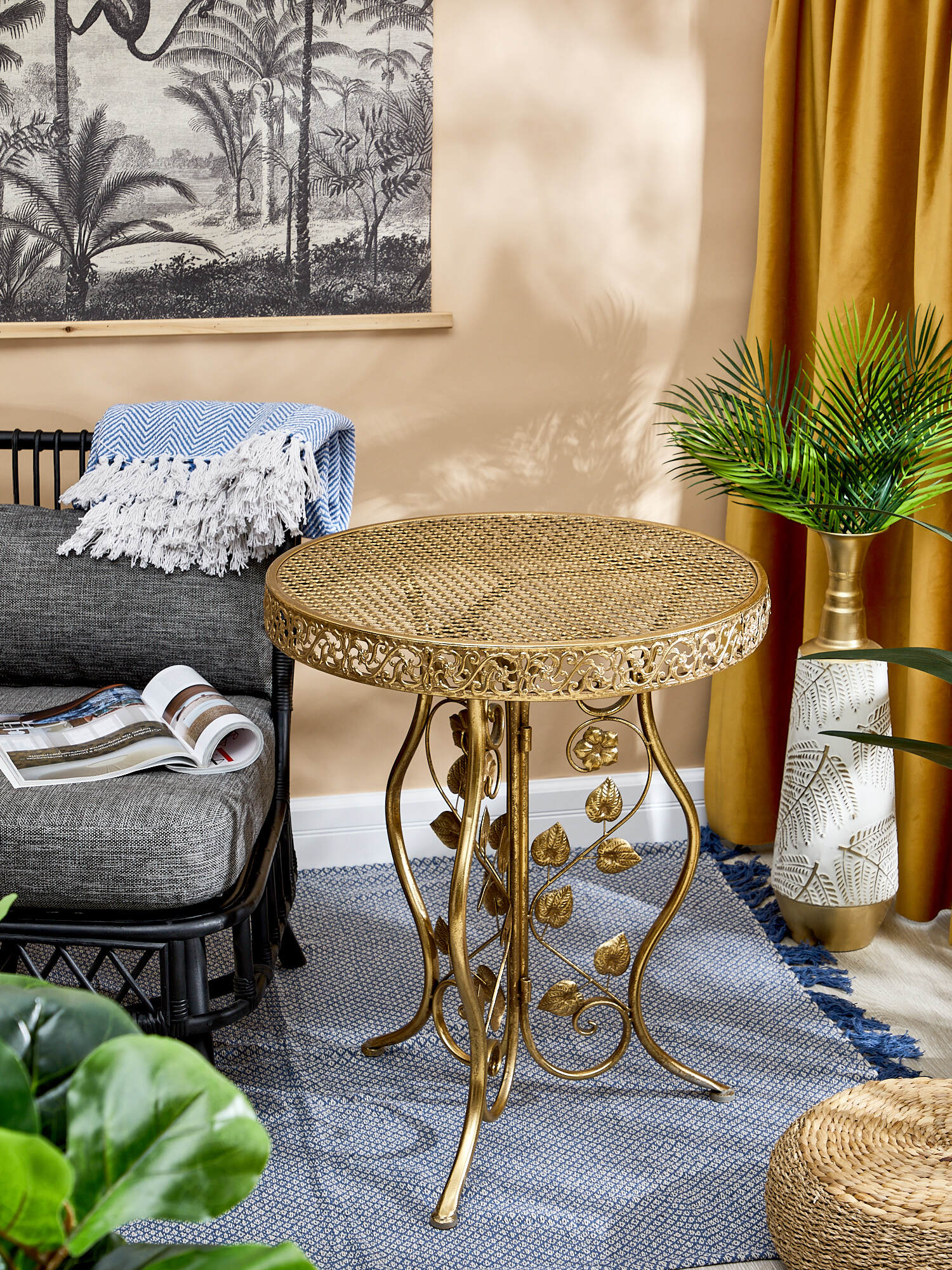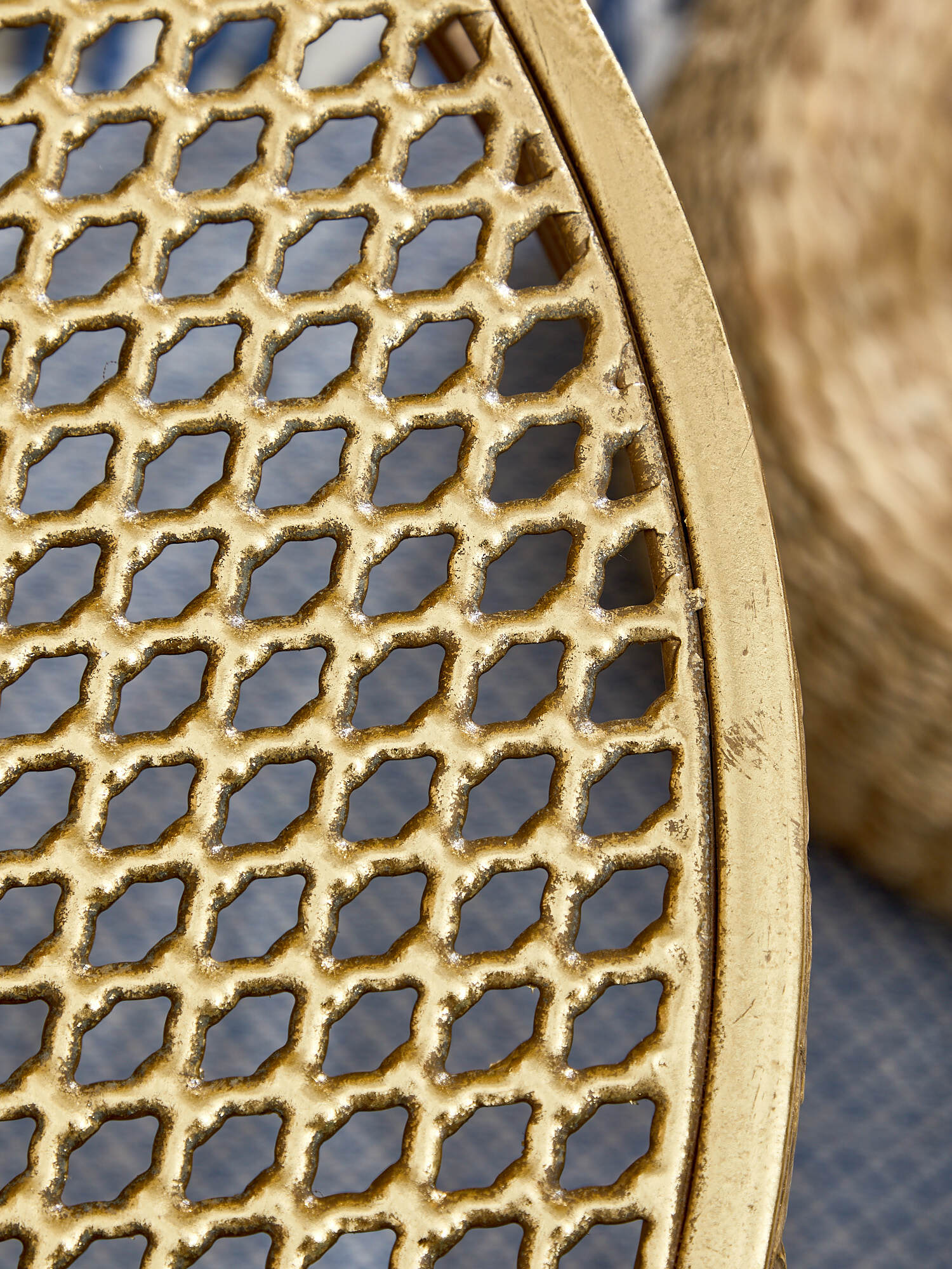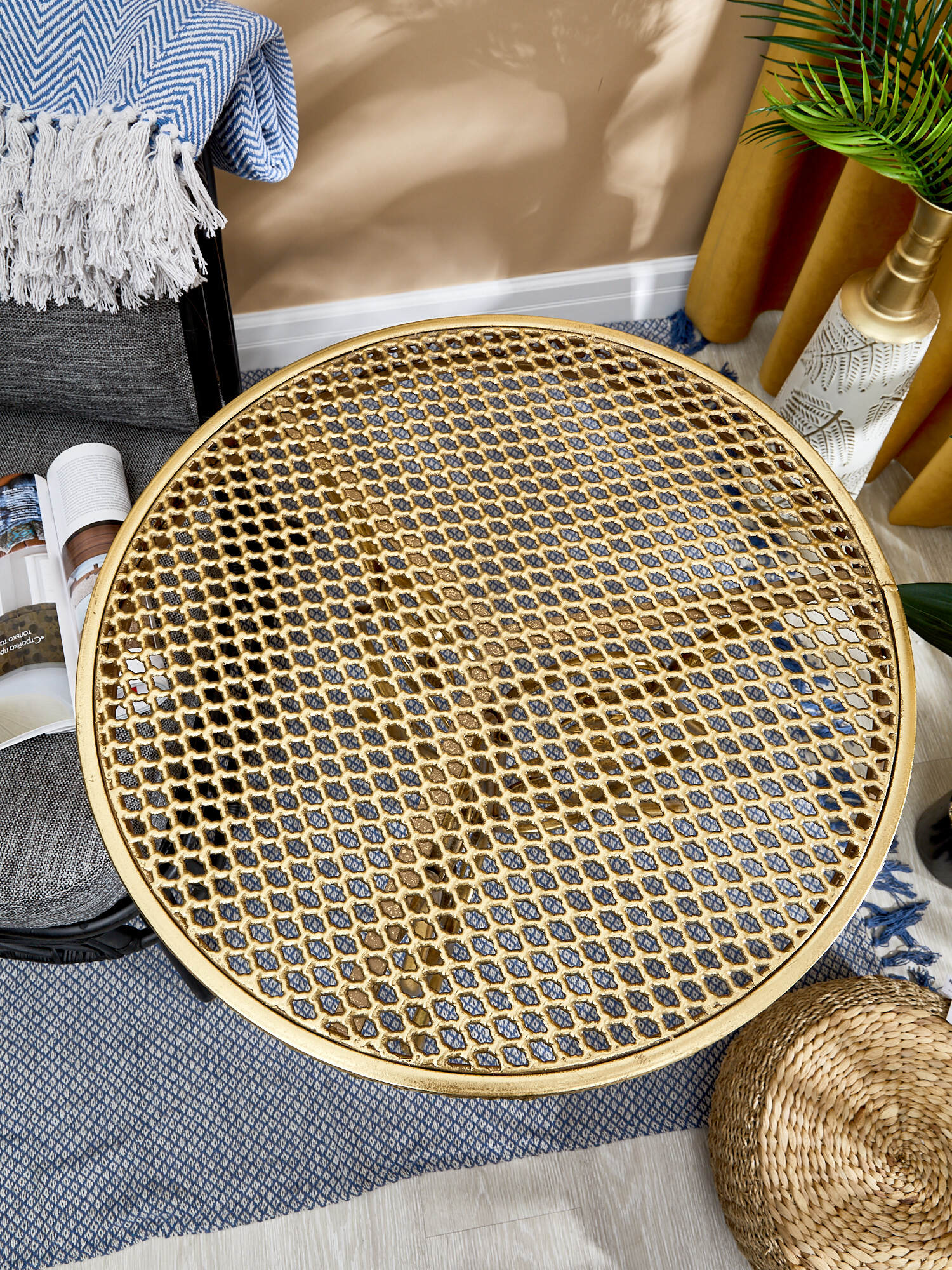 Изысканный складной столик Эфиопия, выполненный из металла в африканском стиле с напылением золотистого цвета, и украшенный орнаментом на столешнице. Изделие имеет признаки искусственного состаривания, поверхность декорирована с эффектом патинирования, а наличие сварочных фрагментов подчеркивают принадлежность к ручной работе. Оригинальная форма столика подчеркнет ваш изысканный интерьер своей неповторимостью. Эксклюзивные формы и фактуры навеяло богатство культуры Африки, множество художественных традиций и таинственная атмосфера, окутывающая неподражаемостью.