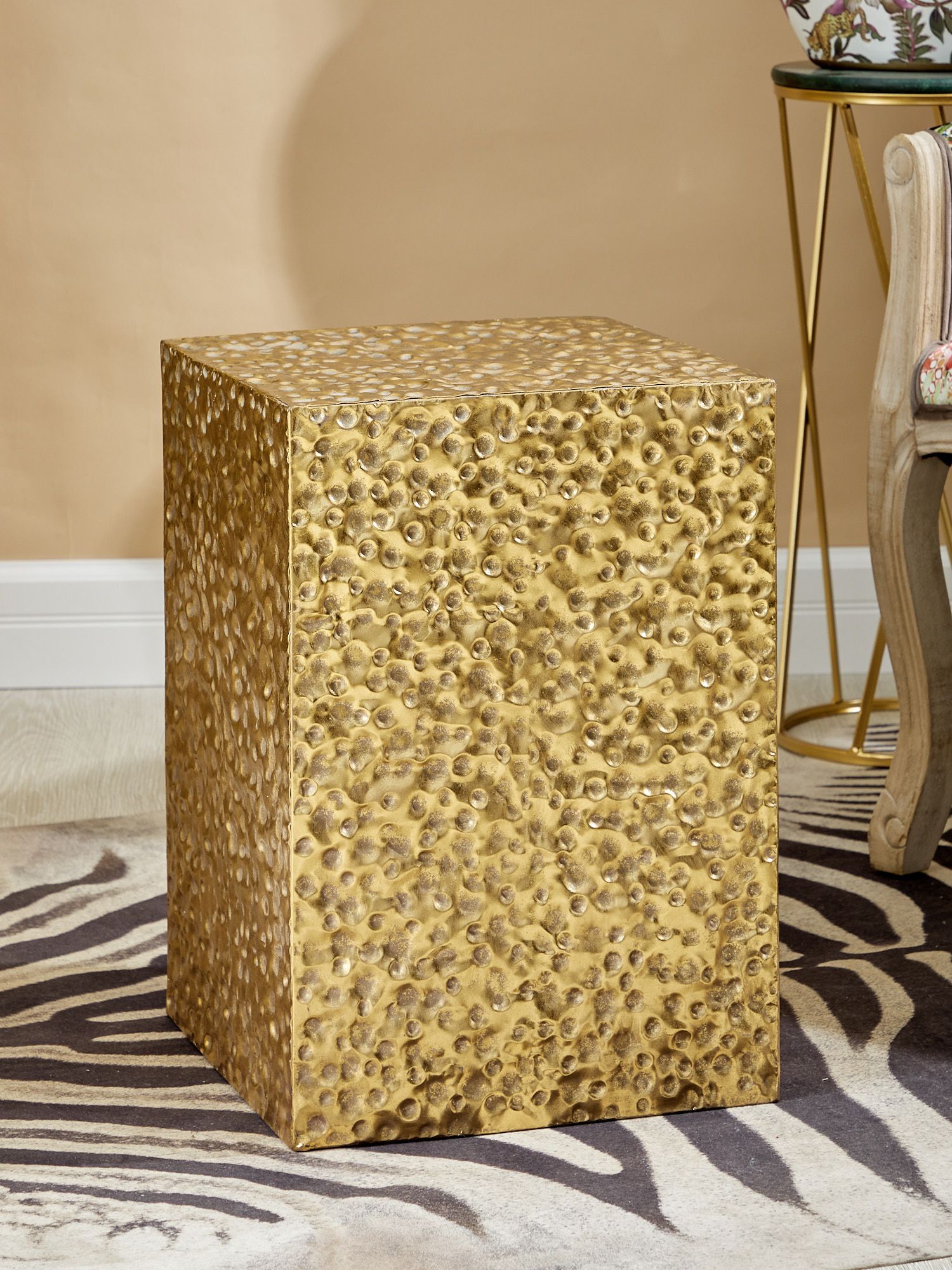 Интерьерный столик Калахари, выполненный из металла в африканском стиле, с напылением золотистого цвета и украшенный фактурной отделкой на корпусе изделия. Оригинальная форма столика подчеркнет ваш изысканный интерьер своей неповторимостью. Эксклюзивные формы и фактуры навеяло богатство культуры Африки, множество художественных традиций и таинственная атмосфера, окутывающая неподражаемостью.
