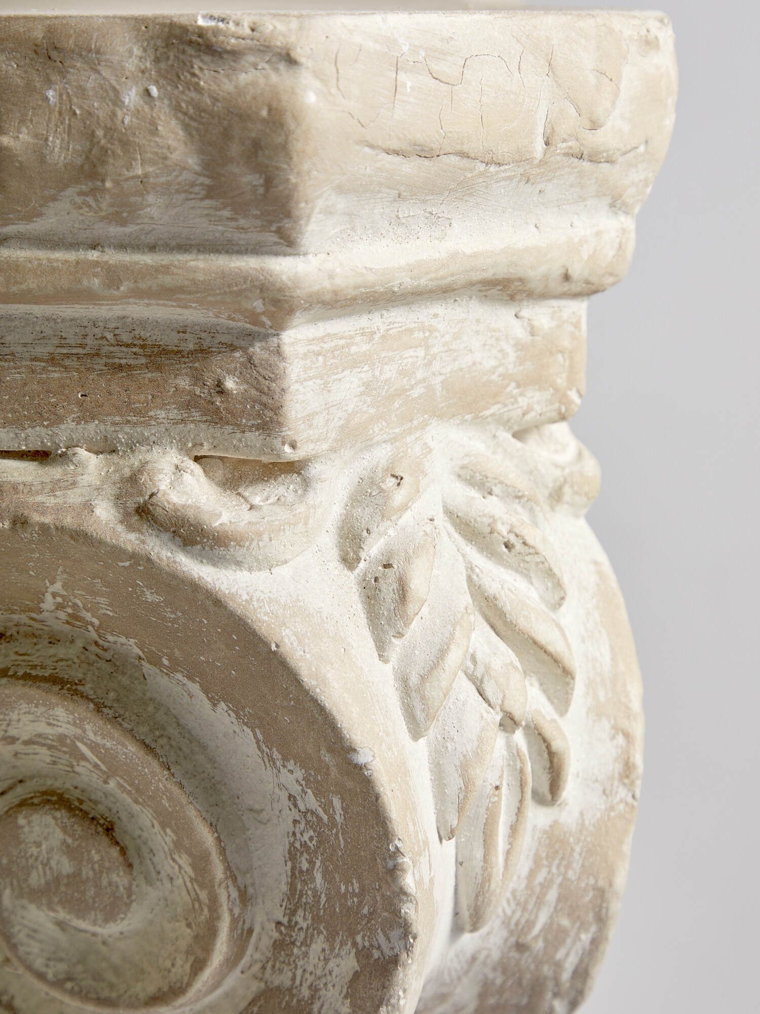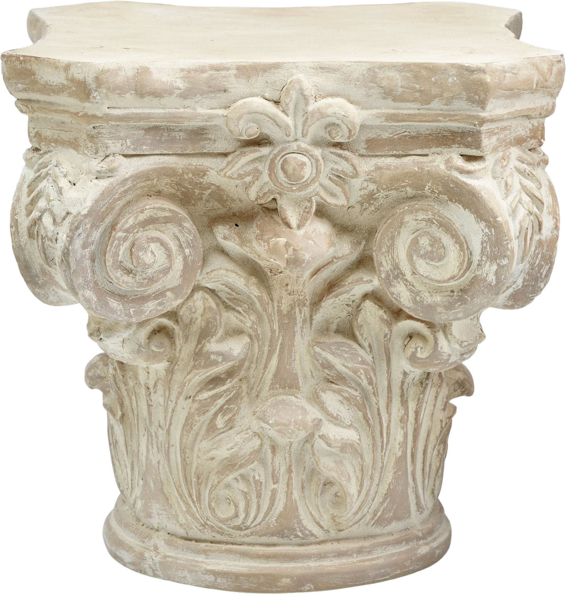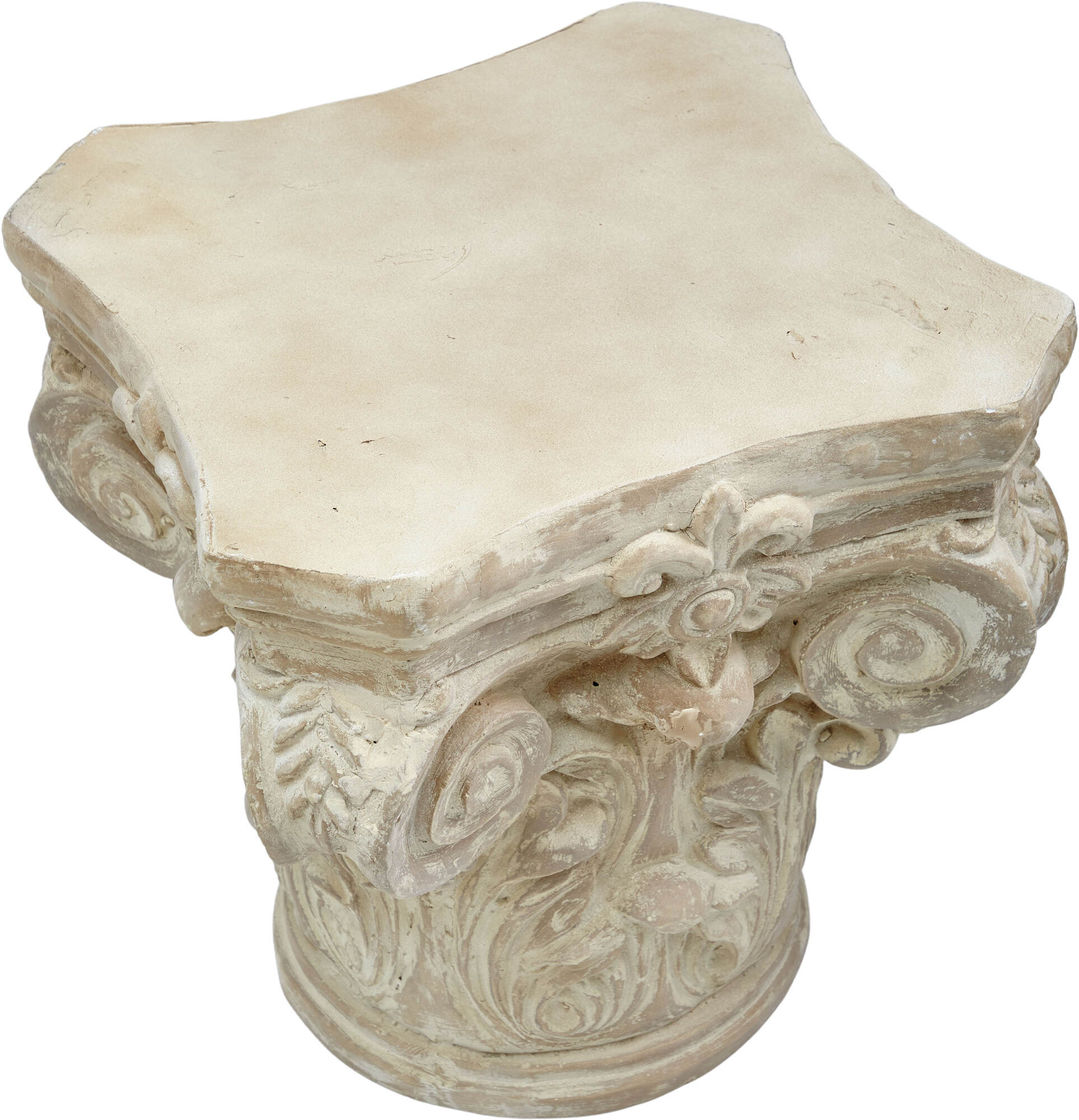 Интерьерный столик в виде капители создаст новую атмосферу в вашем доме, привнося величественный античный стиль греческих и римских эпох. Уникальная эстетика и гармония этого изделия никогда не потеряют свою актуальность, демонстрируя на своей поверхности элементы декора, цветочные композиции и другие предметы. Поверхностные потертости и неровности с эффектом реставрации, трещины и сколы краски на изделии характеризуют индивидуальный подход к производству каждого предмета, создавая задуманный дизайнером античный образ ушедших эпох.