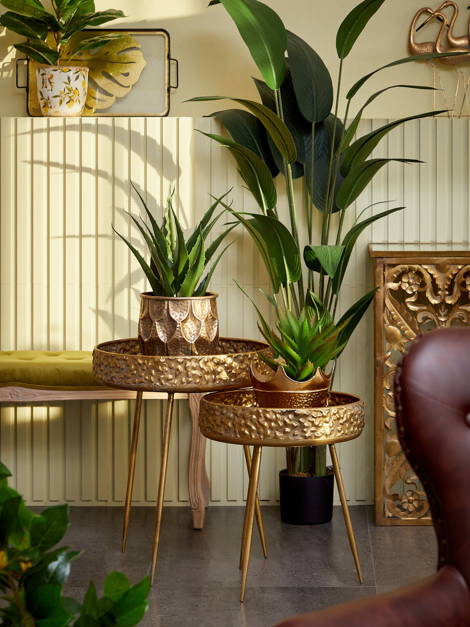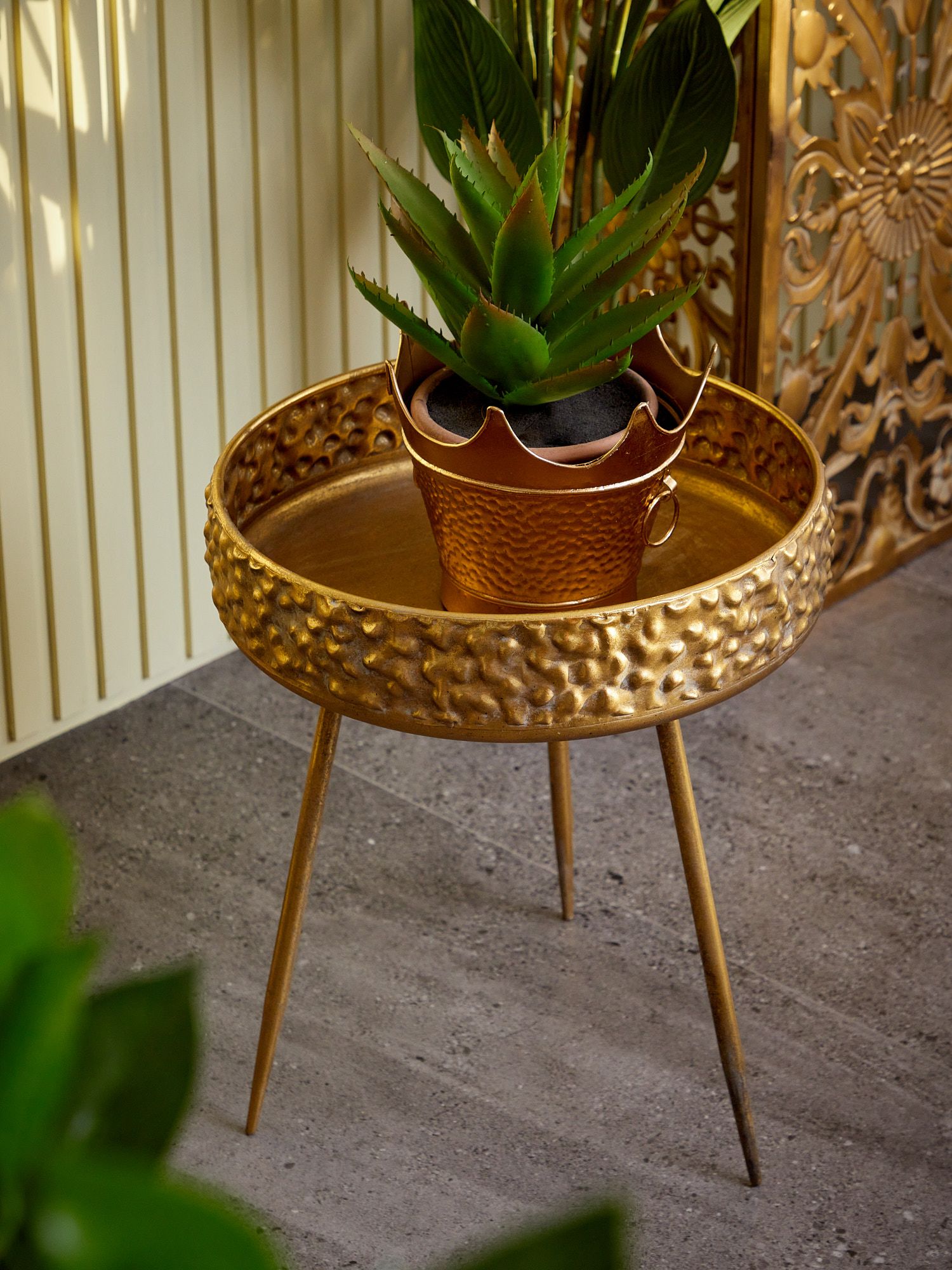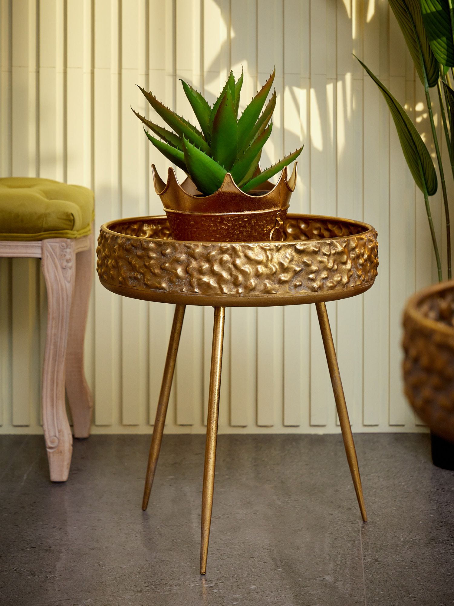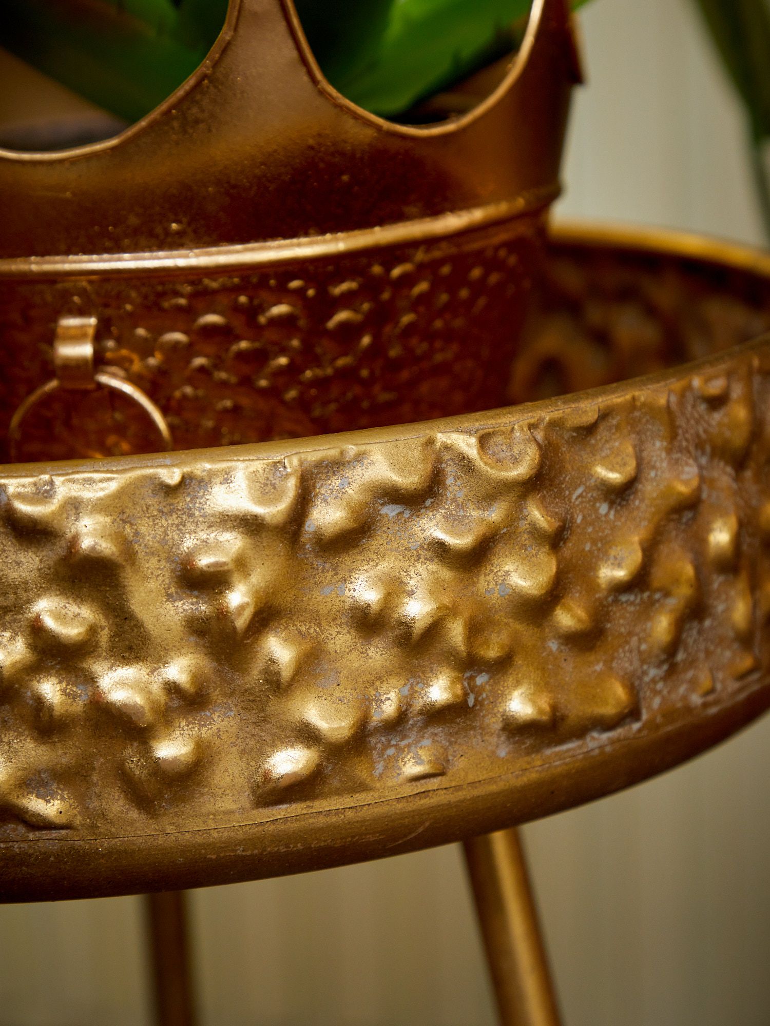 Интерьерный столик Либерия на трех ножках, выполненный из металла в африканском стиле, украшен столешницей с фактурой в виде древесной коры с эффектом под старину. Изделие имеет признаки искусственного состаривания, поверхность декорирована с эффектом патинирования, а наличие сварочных швов подчеркивают принадлежность к ручной работе. Оригинальная форма столика подчеркнет ваш изысканный интерьер своей неповторимостью. Эксклюзивные формы и фактуры навеяло богатство культуры Африки, множество художественных традиций и таинственная атмосфера, окутывающая неподражаемостью.