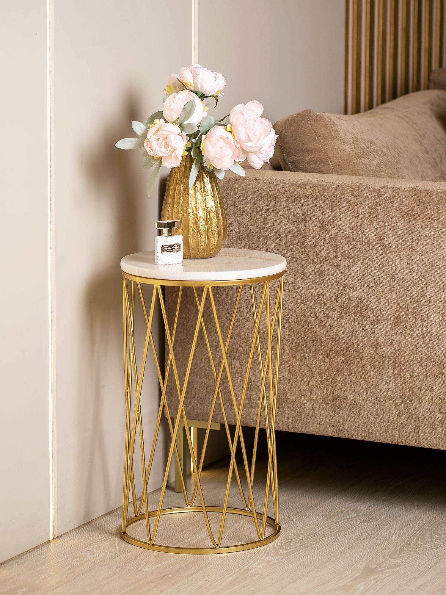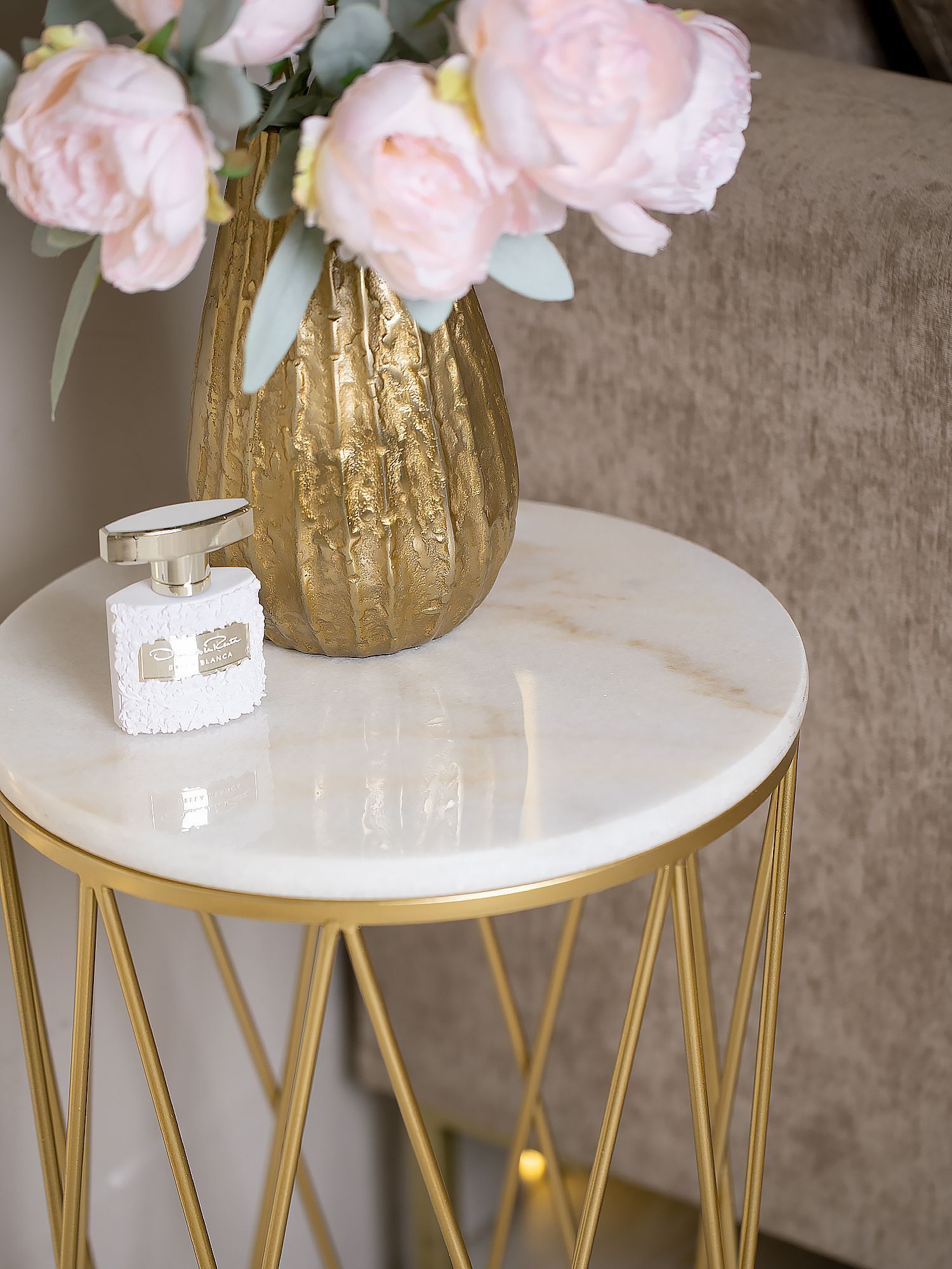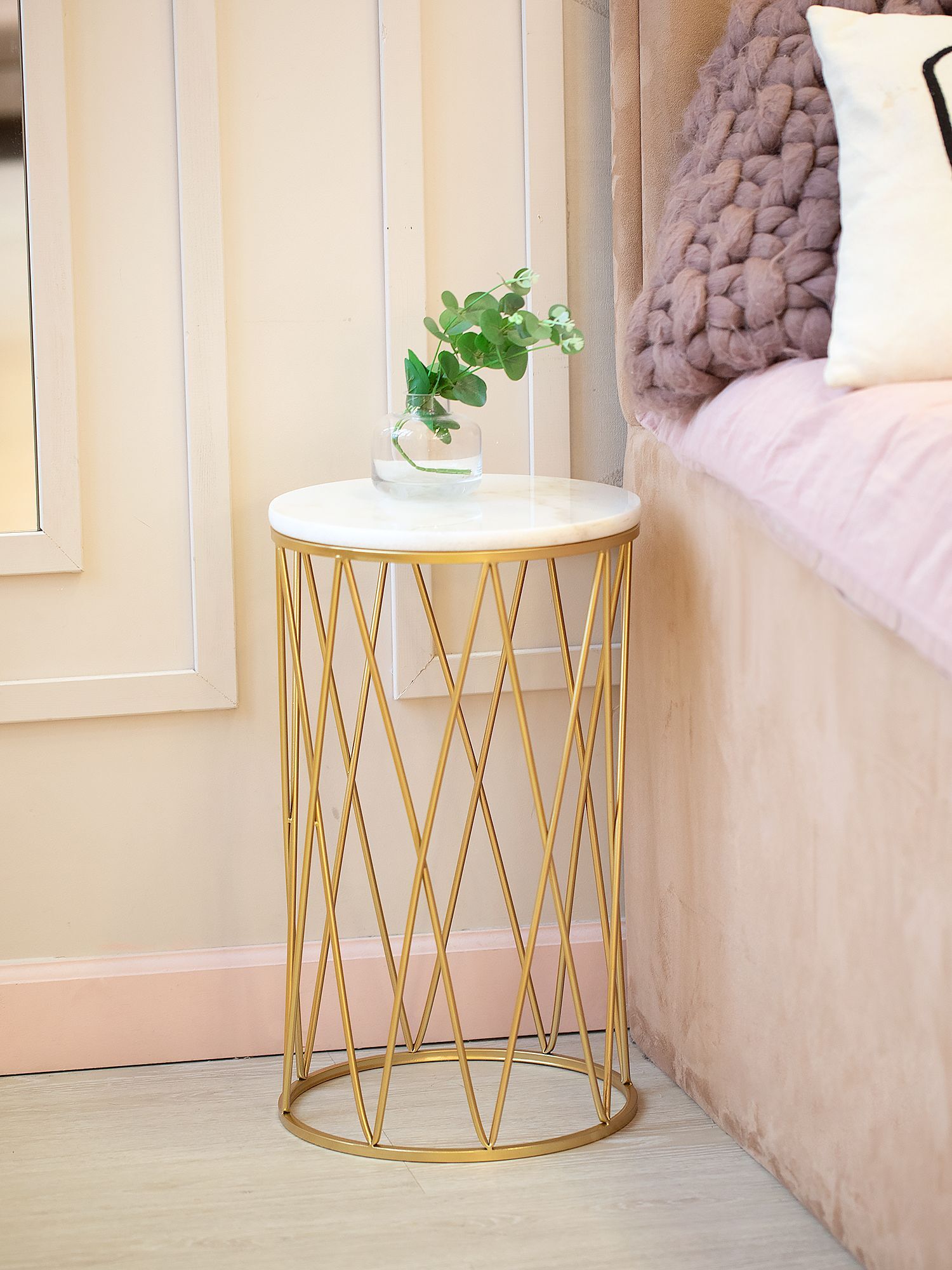 Столик, выполненный из натурального мрамора на металлическом основании, предназначен для тех, кто любит в интерьере элегантность и натуральные материалы. Круглая столешница изготовлена из мрамора белого цвета. Станет украшением интерьера в любом доме. Мрамор, как природный материал, может иметь различные рисунки прожилок, может быть шероховатым и иметь несквозные трещины и небольшие сколы по краю. Каждый предмет собирается и подгоняется вручную, по этому небольшое отклонение от края подстолья в горизонтальной или вертикальной плоскости не считается дефектом. На подстолье могут присутствовать незначительные потертости и царапины.