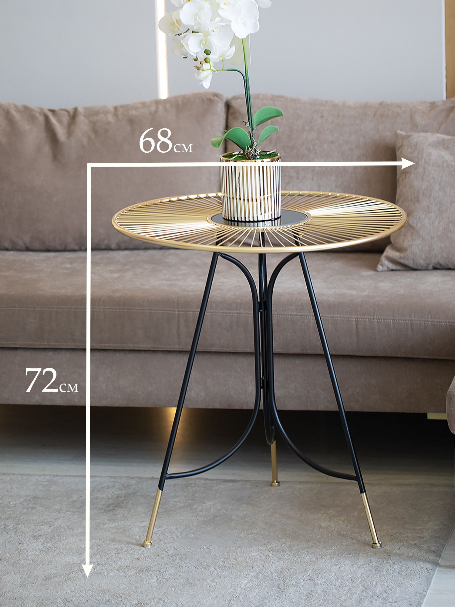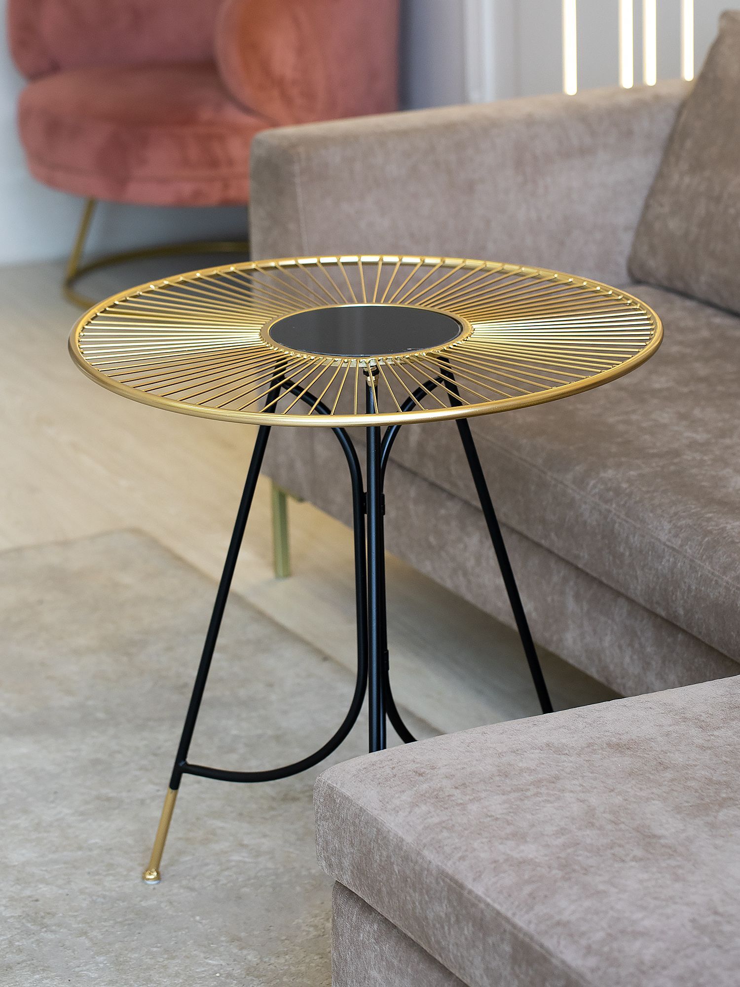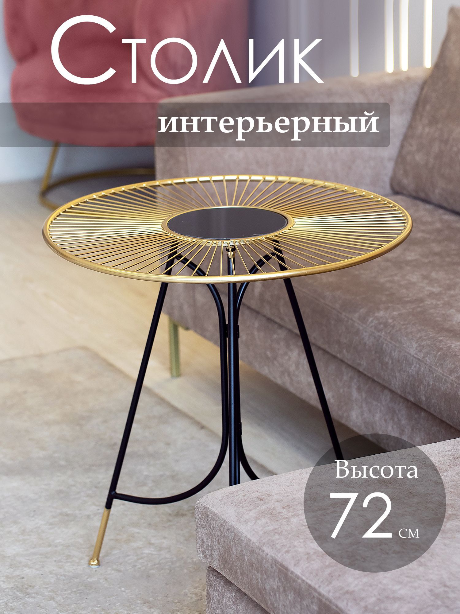 Оригинальный интерьерный столик со стеклянной столешницей, украсит современный интерьер вашего дома и воплотит дизайнерские мечты. Столешница изготовлена из металла и стекла черного цвета.