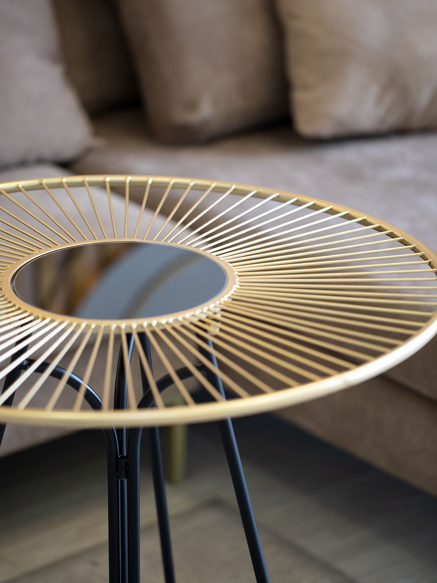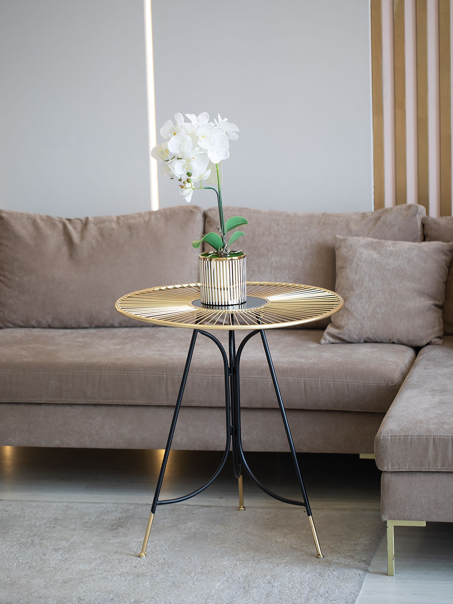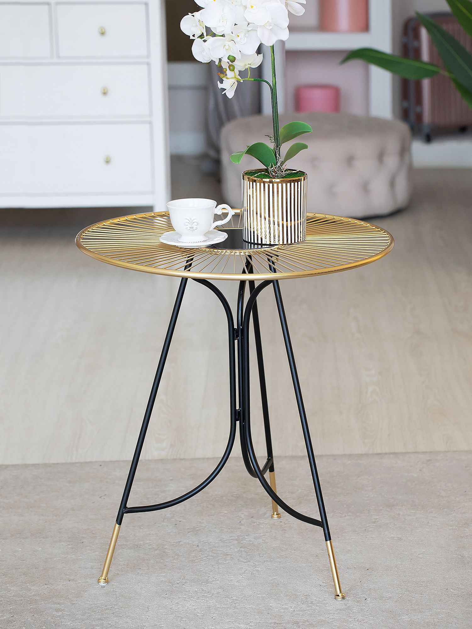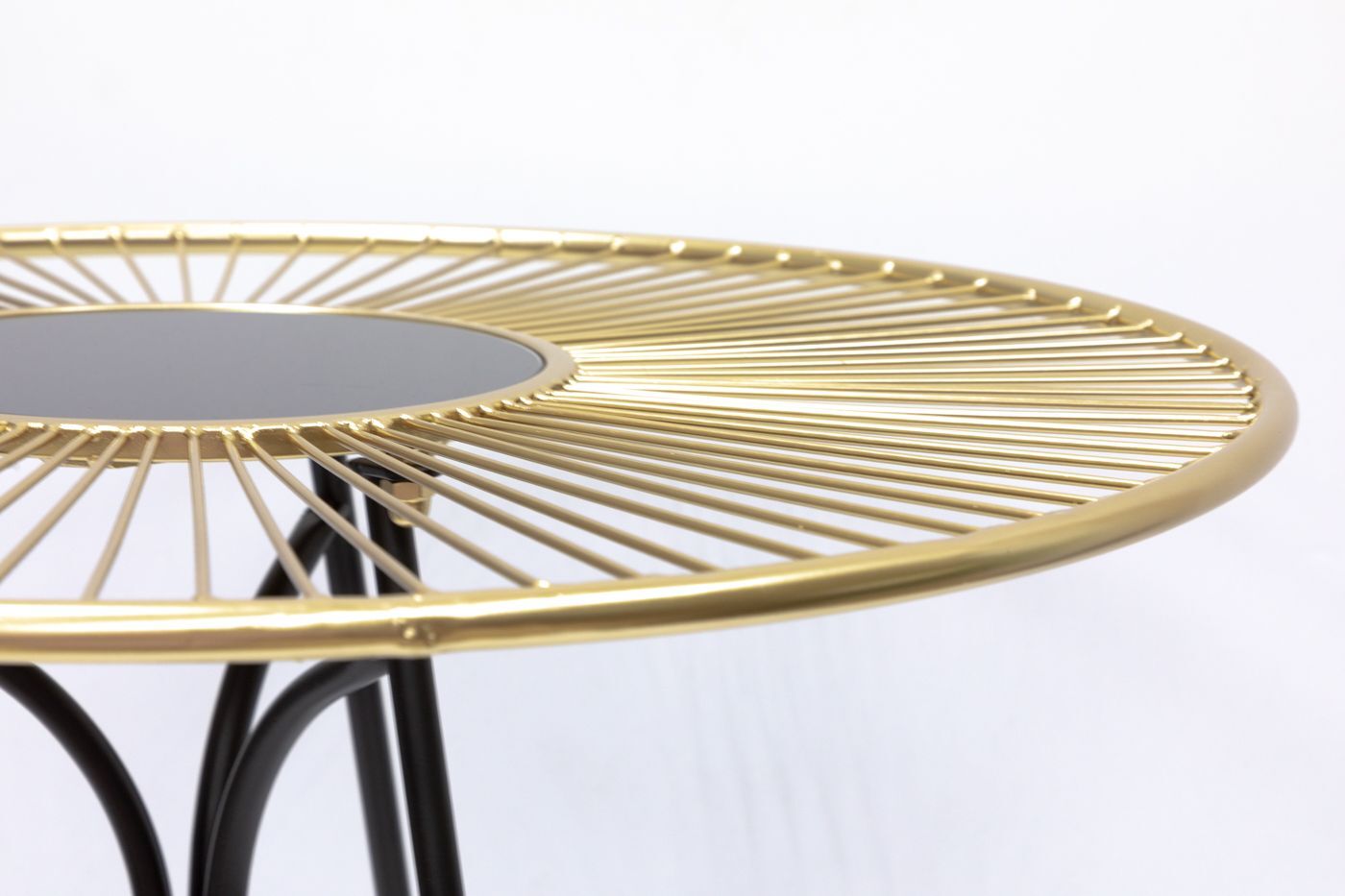 Оригинальный интерьерный столик со стеклянной столешницей, украсит современный интерьер вашего дома и воплотит дизайнерские мечты. Столешница изготовлена из металла и стекла черного цвета.