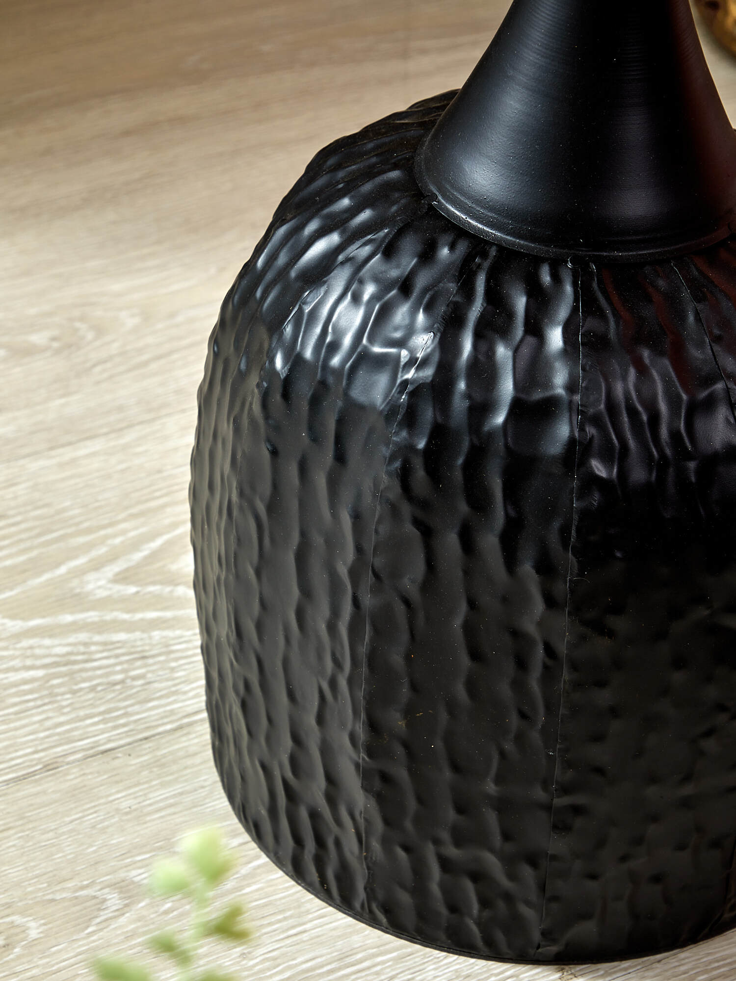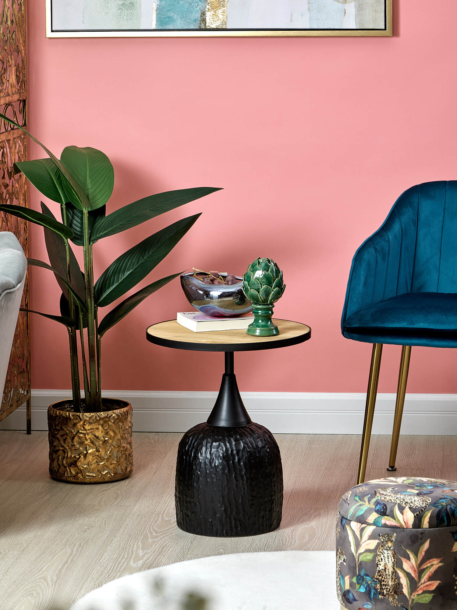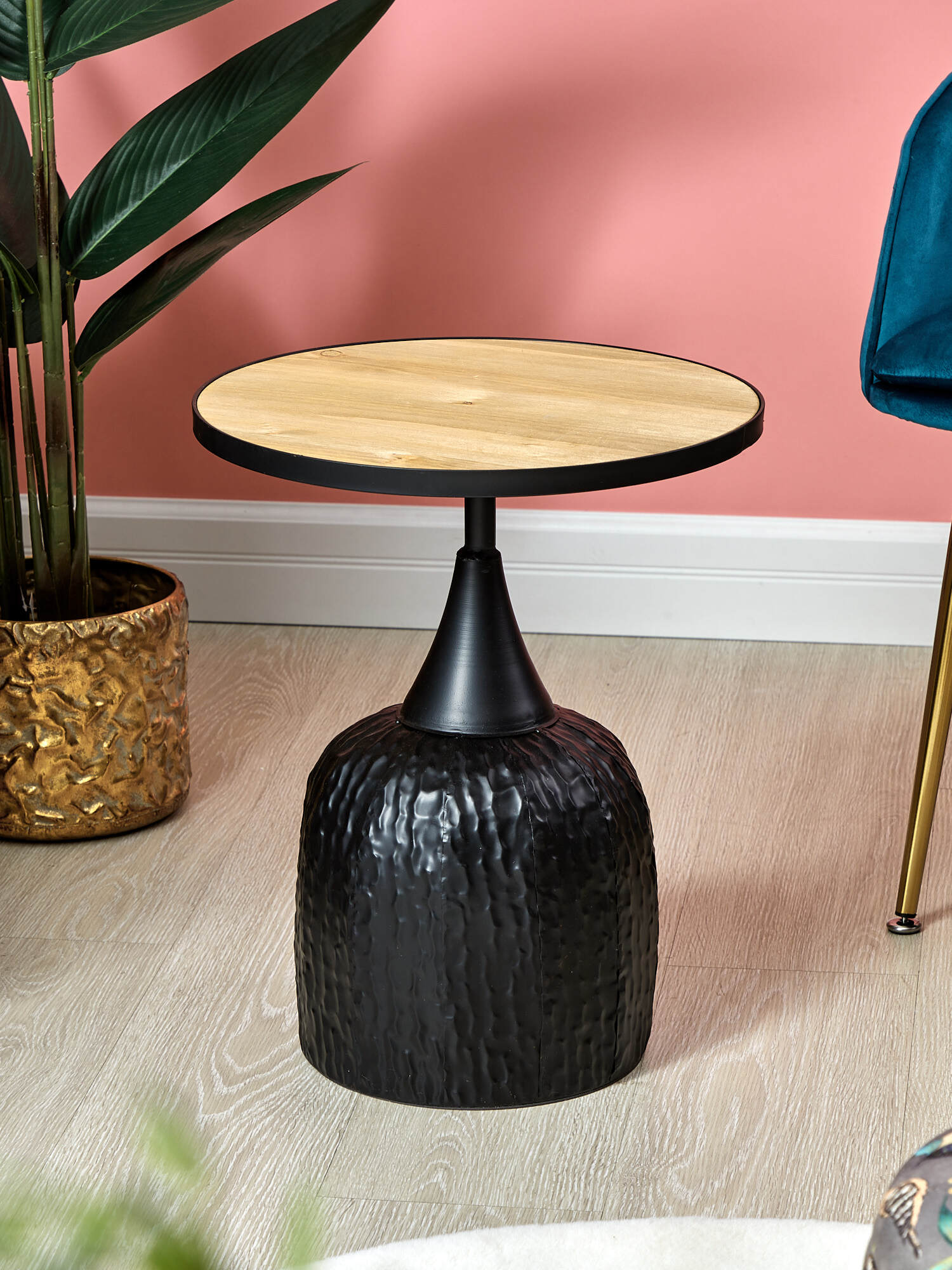 Интерьерный столик Занзибар, выполненный в африканском стиле из металла, МДФ и шпона натурального дерева ели, с напылением черного цвета и украшенный фактурной отделкой вокруг подножия. Оригинальная форма столика подчеркнет ваш изысканный интерьер своей неповторимостью. Эксклюзивные формы и фактуры навеяло богатство культуры Африки, множество художественных традиций и таинственная атмосфера, окутывающая неподражаемостью.