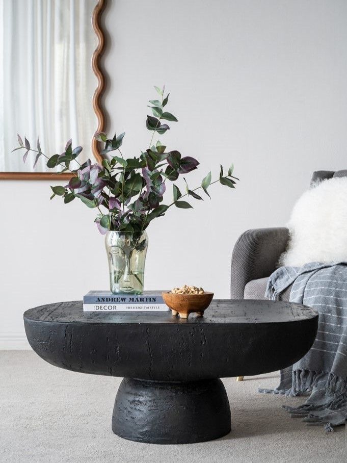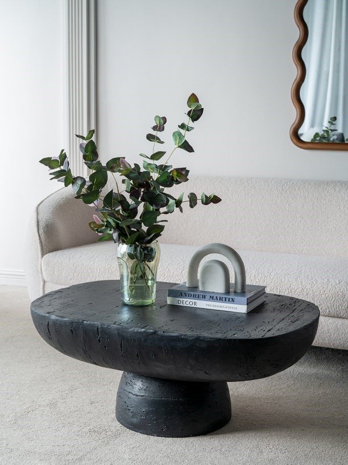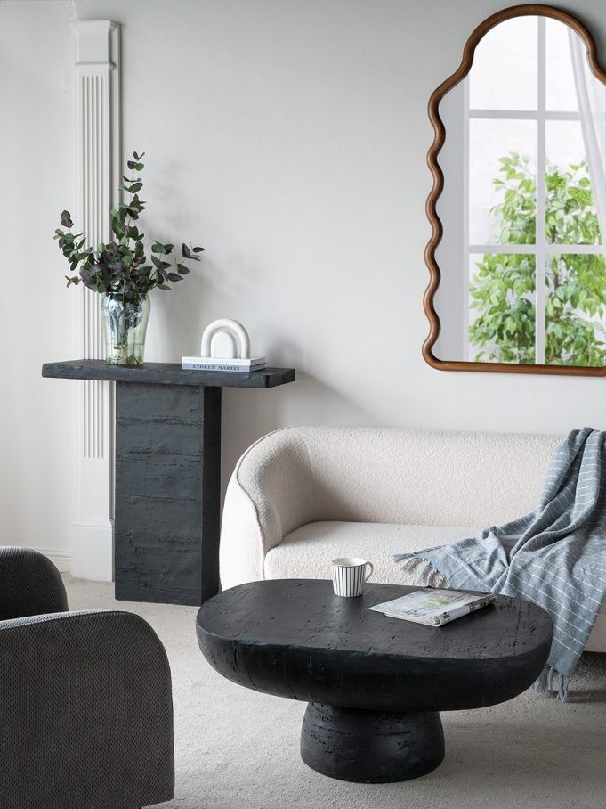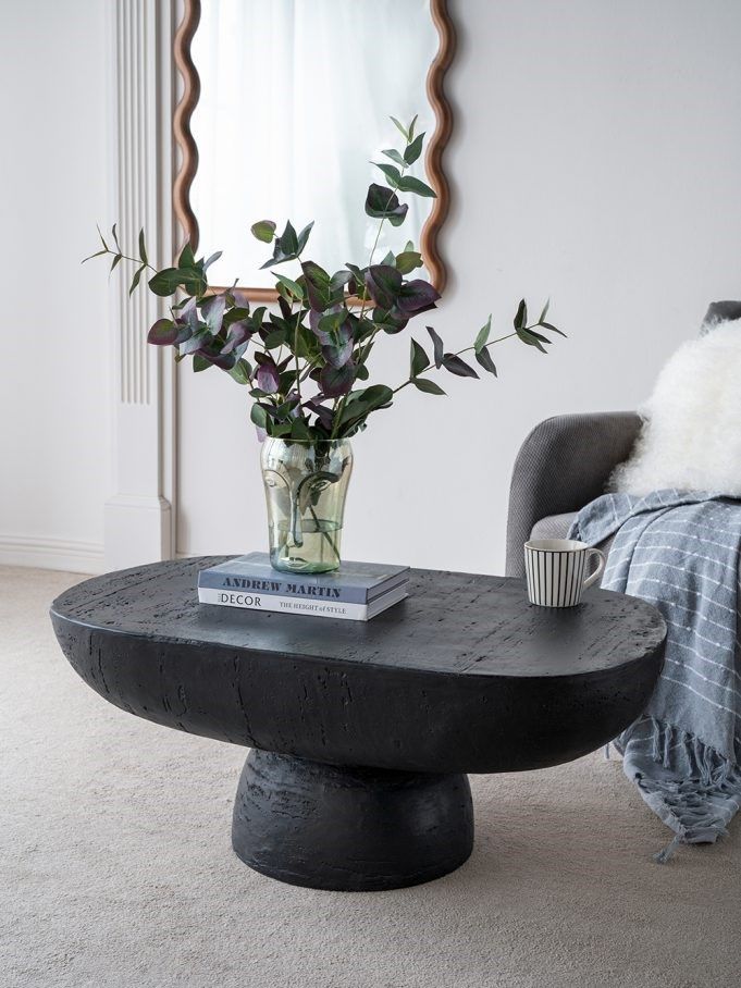 Декоративный столик, сочетающий в себе лучшие современные мотивы, с длинной овальной столешницей, круглым основанием и черной цветовой гаммой. Изделие продемонстрирует ваши книги, разместит предметы домашнего обихода, а также придаст вашему интерьеру тонкий шарм.
