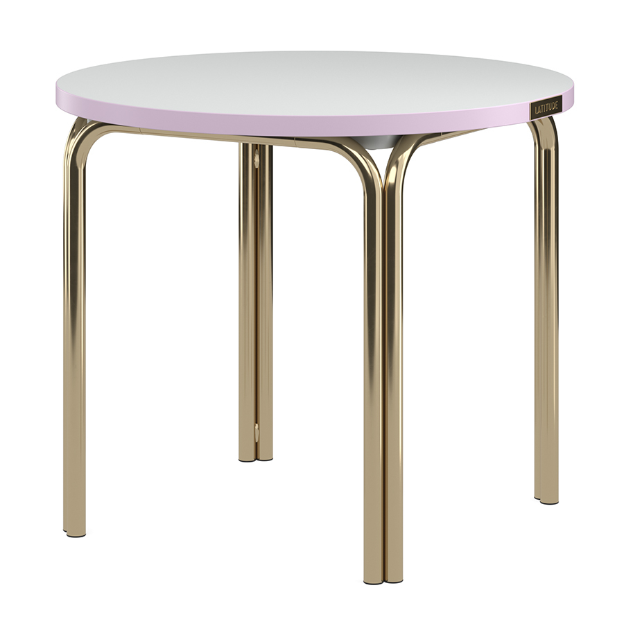 Материалы: сталь, ламинированная МДФ. Диаметр: 50 см. Высота: 40 см. Цвет: латунь/серый/розовый.