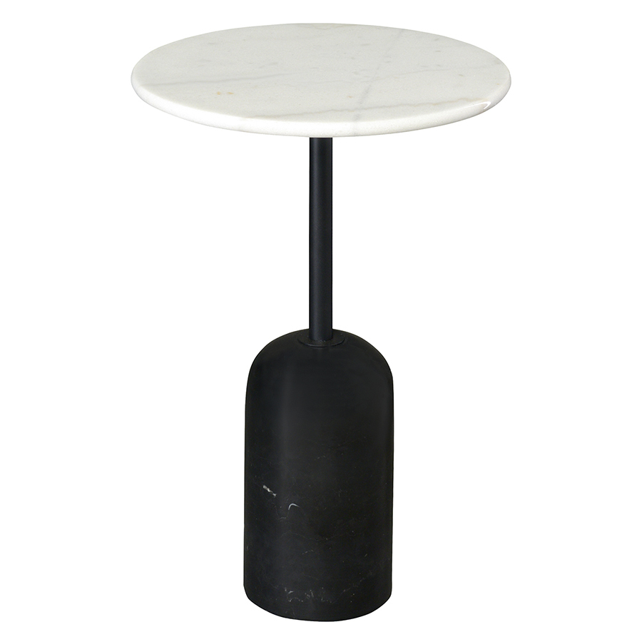 Материалы: столешница и основание – натуральный мрамор, ножка – нержавеющая сталь. Максимальная нагрузка - 15 кг. Диаметр: 40 см. Высота: 59 см. Цвет: белый/черный.