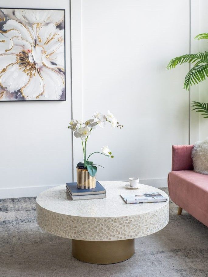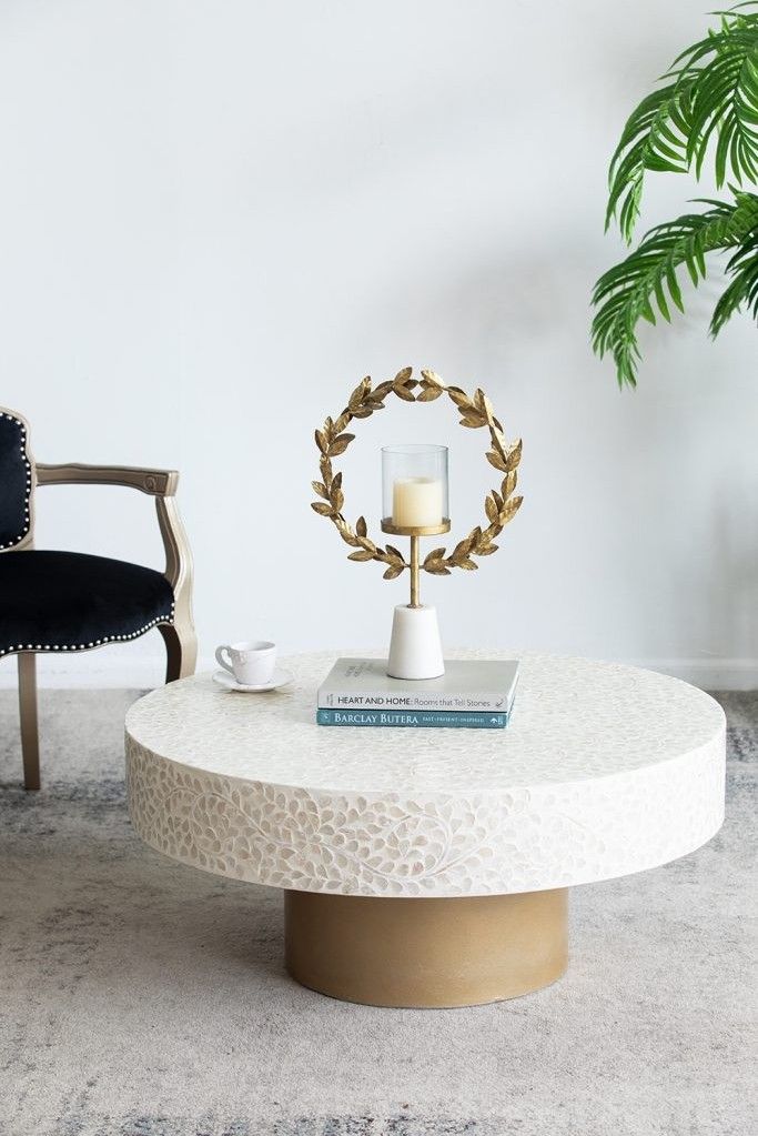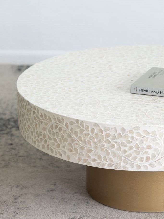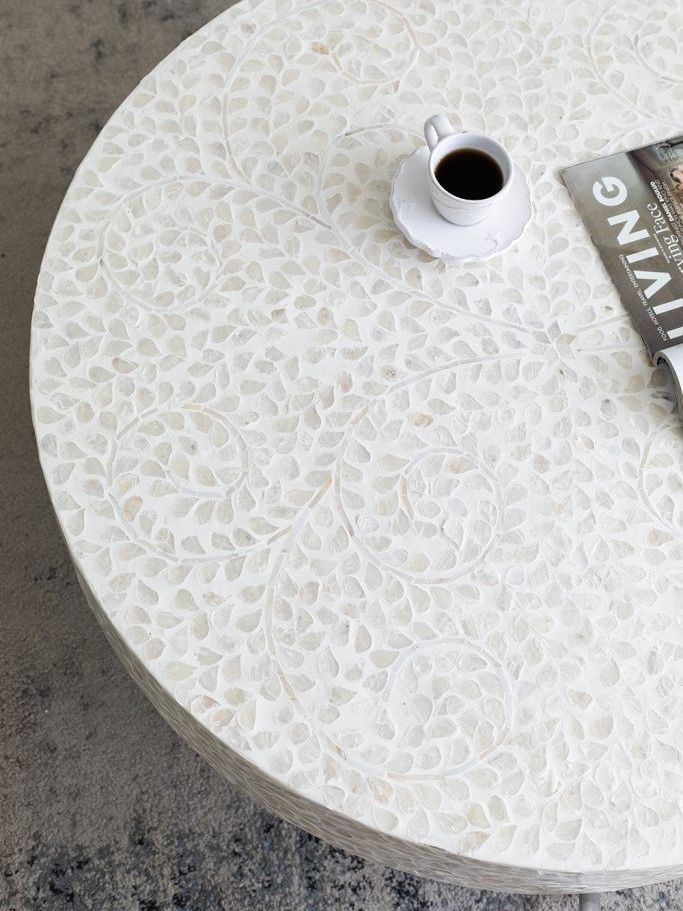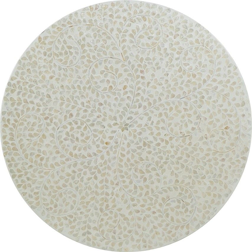 Изысканный столик с мозаичным рисунком из раковин устриц в светлых тонах, идеально подходит своим привлекательным стилем как дополнение к вашему интерьеру. Добавьте его в современную жилую комнату, просторный холл или офис, чтобы насладиться его перламутровым блеском и классической формой.