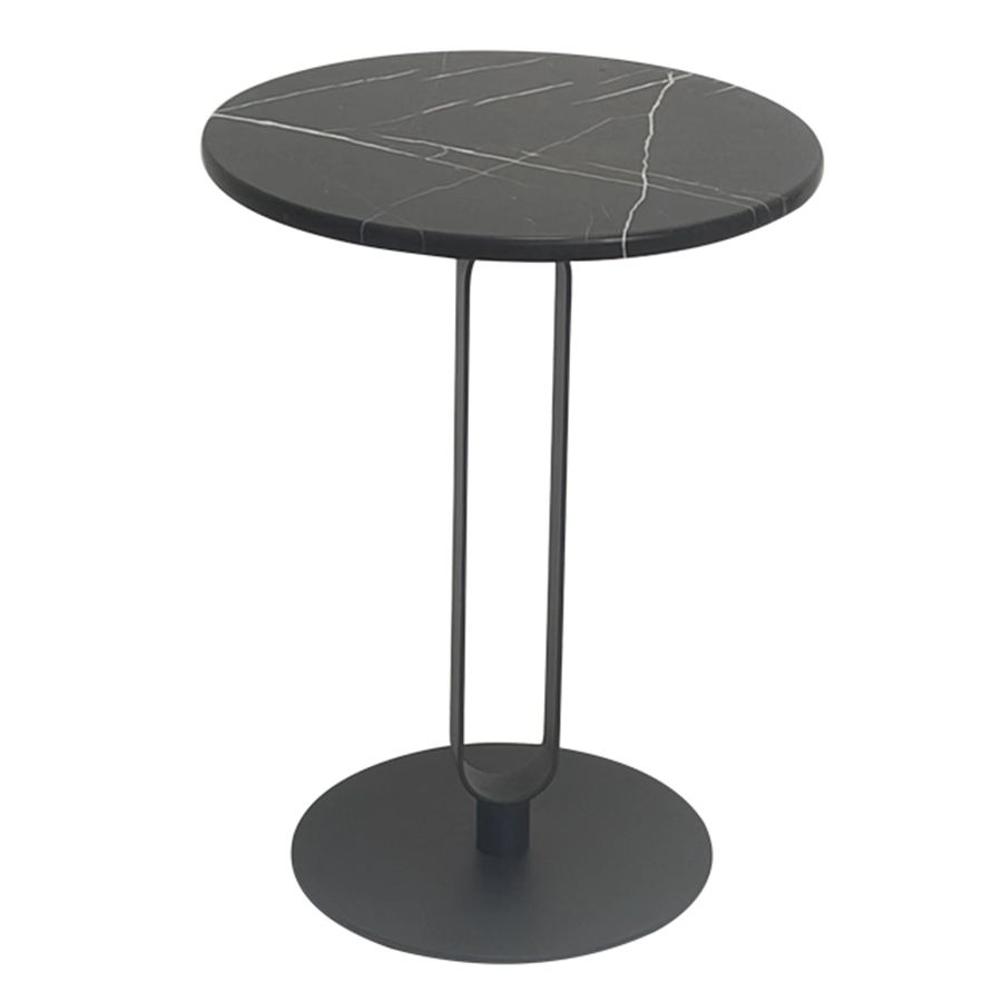 Материалы: столешница – искусственный мрамор, основание – сталь. Максимальная нагрузка - 18 кг. Диаметр: 40 см. Высота: 54 см. Цвет: черный.