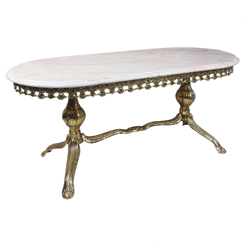 Столик овальный низкий с мраморной столешницей, золото
