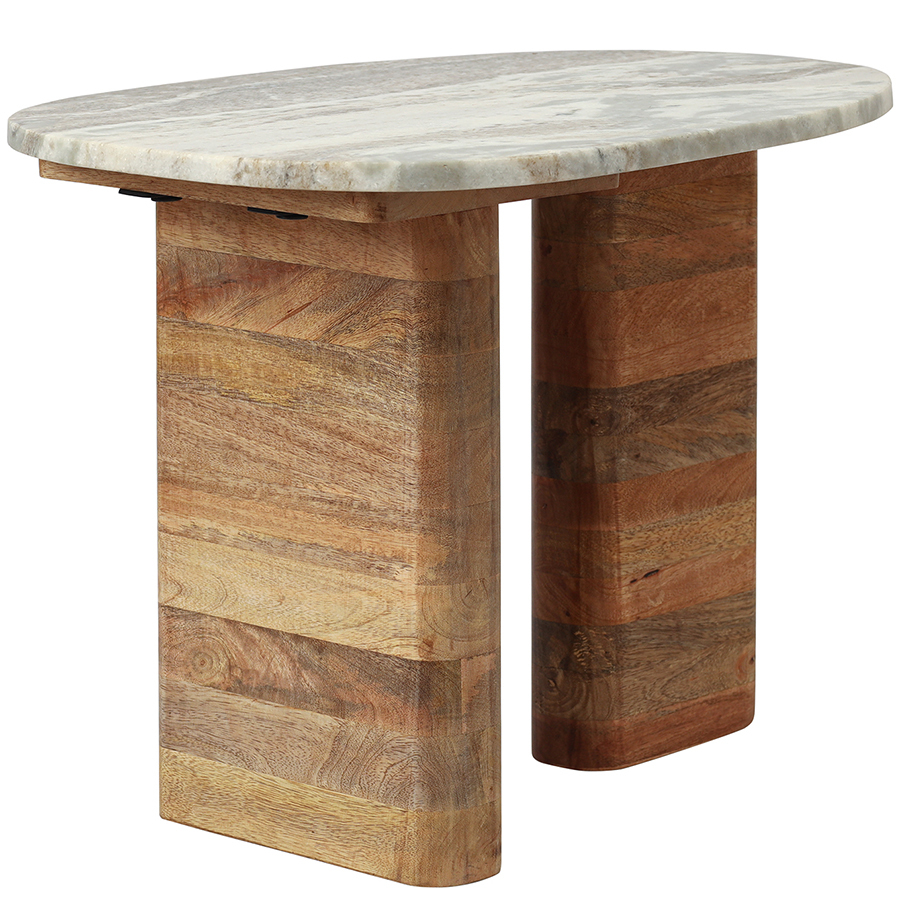 - Универсальность мрамора и естественный оттенок древесины позволяют вписать столик в интерьер, оформленный в любой цветовой гамме.