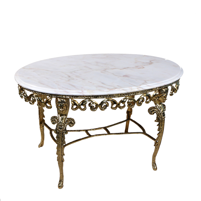 Столик Ренессанс овальный с мраморной столешницей, золото