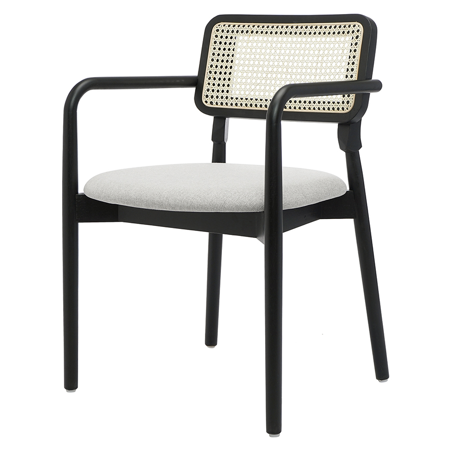Сиденье с мягким пенополиуретановым наполнителем, широкая спинка и подлокотники гарантируют комфортную посадку и оптимальную поддержку спины, позволяя без чувства усталости наслаждаться долгими застольями в кругу друзей и семьи. Тканевая обивка приятна на ощупь, практична и проста в уходе. Сочетание дерева и текстиля делает стул уютным и отлично комбинируется с различными вариантами отделки и декора.