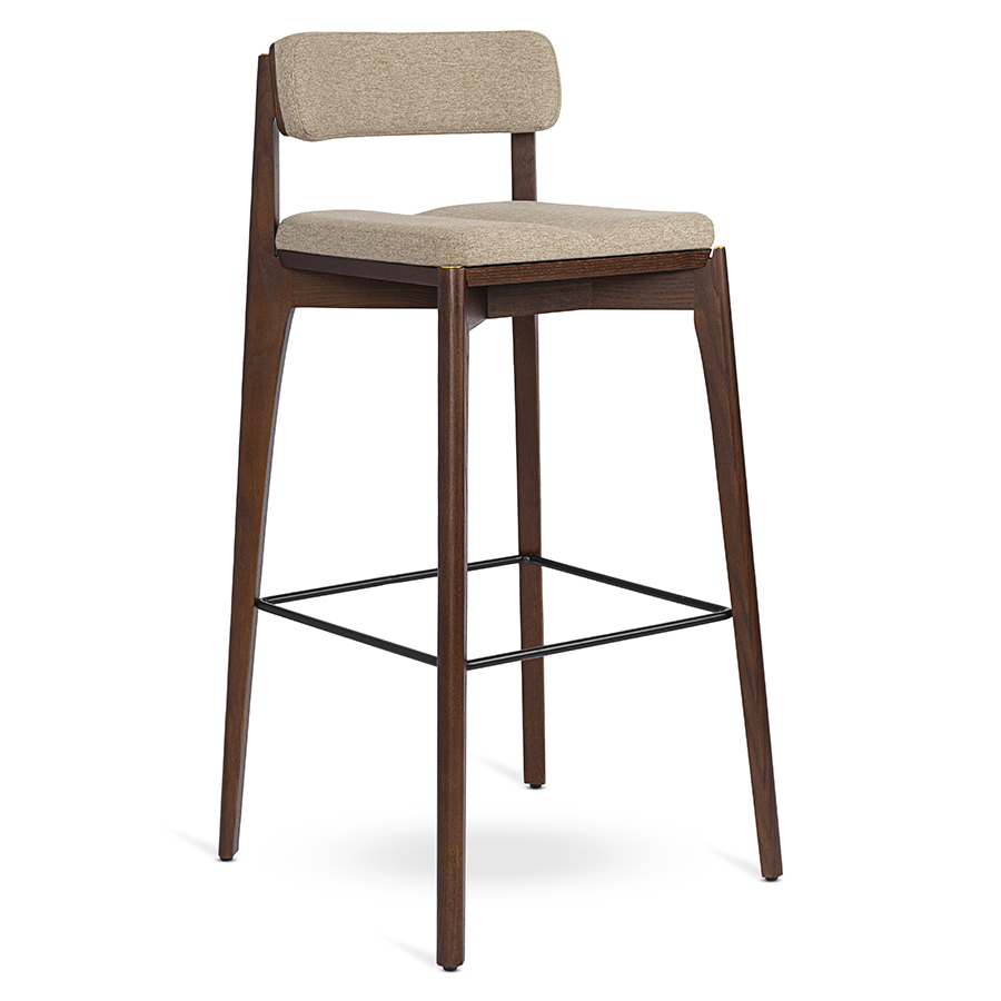 Cтул барный выполнен из массива ясеня – твердой породы дерева с прекрасной текстурой и отличными эксплуатационными свойствами. Плотность и прочность древесины сравнима с характеристиками дуба, что обеспечивает изделию из данного материала высокую устойчивость к деформации, ударам и долговечную конструкцию. Ткань обивки обладает высокими показателями износостойкости. Используемый в качестве наполнителя сиденья пенополиуретан отличается комфортной жесткостью.