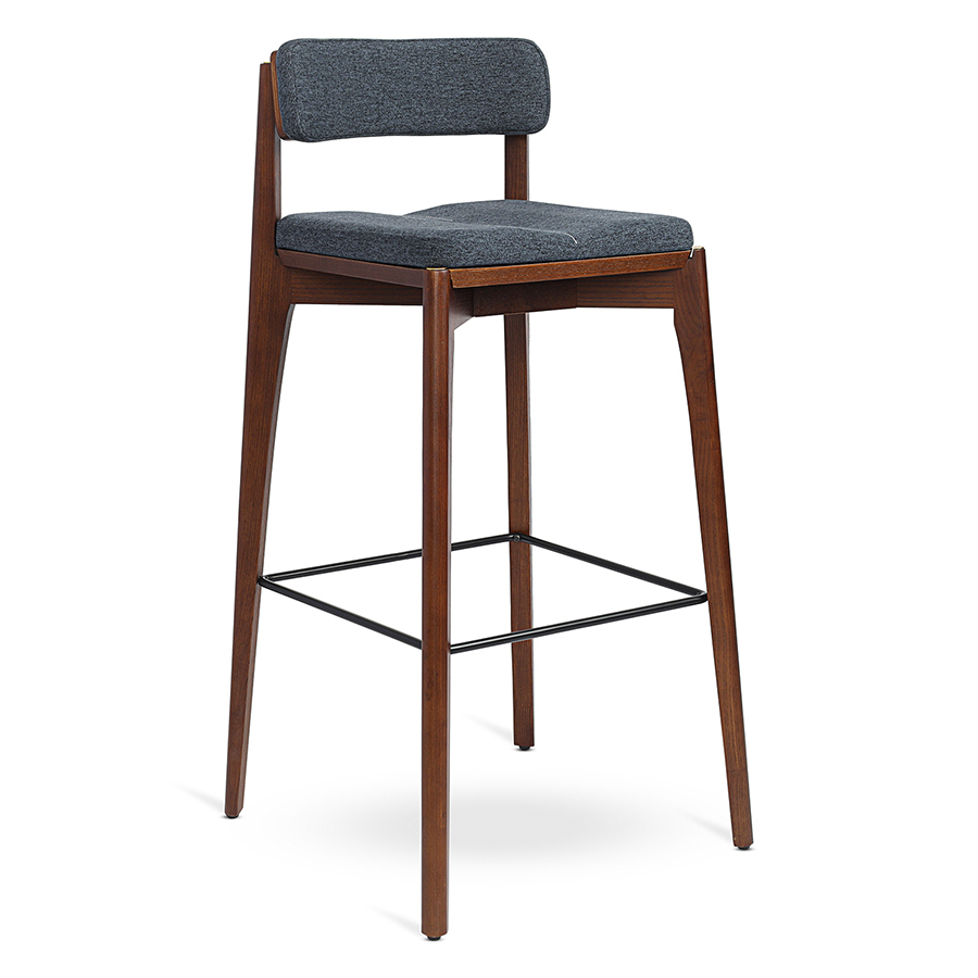 Cтул барный выполнен из массива ясеня – твердой породы дерева с прекрасной текстурой и отличными эксплуатационными свойствами. Плотность и прочность древесины сравнима с характеристиками дуба, что обеспечивает изделию из данного материала высокую устойчивость к деформации, ударам и долговечную конструкцию. Ткань обивки обладает высокими показателями износостойкости. Используемый в качестве наполнителя сиденья пенополиуретан отличается комфортной жесткостью.