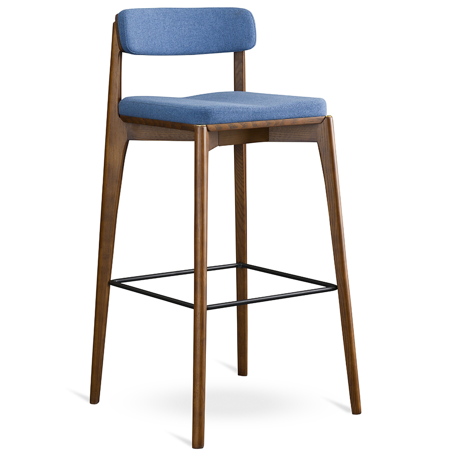 Материалы: массив ясеня, фанера, 100%, полиуретан, 100%, полиэстер, сталь. Размеры: 51х52х102 см. Высота сиденья: 79 см. Ширина сиденья: 39 см. Глубина сиденья: 37 см. Высота спинки: 24 см. Ширина спинки: 37 см. Высота подножки: 33 см. Максимальная нагрузка: 136 кг. Цвет основания: орех. Цвет обивки: темно-синий.