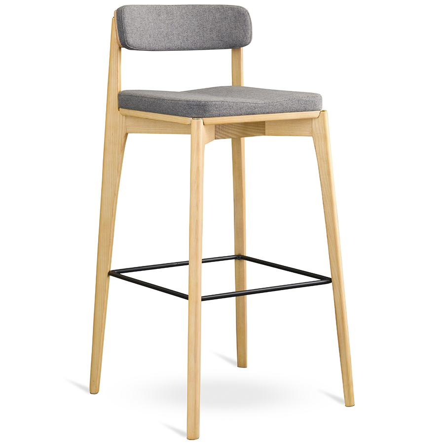 Cтул барный выполнен из массива ясеня – твердой породы дерева с прекрасной текстурой и отличными эксплуатационными свойствами. Плотность и прочность древесины сравнима с характеристиками дуба, что обеспечивает изделию из данного материала высокую устойчивость к деформации, ударам и долговечную конструкцию. Ткань обивки обладает высокими показателями износостойкости. Используемый в качестве наполнителя сиденья пенополиуретан отличается комфортной жесткостью.