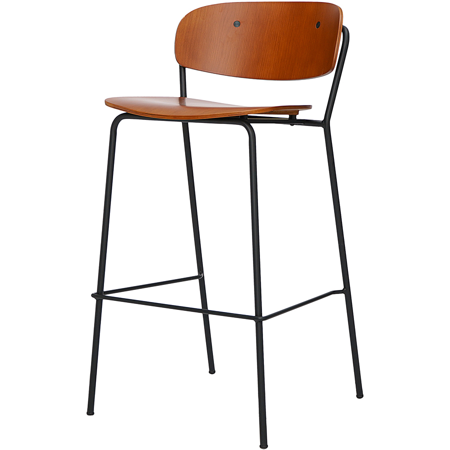 Материалы: фанера, шпон ясеня, железо. Высота сиденья: 72 см. Ширина сиденья: 43,5 см. Глубина сиденья: 40,5 см. Высота спинки: 28,5 см. Ширина спинки: 46 см. Высота подножки: 29 см. Максимальная нагрузка: 120 кг. Цвет: орех.