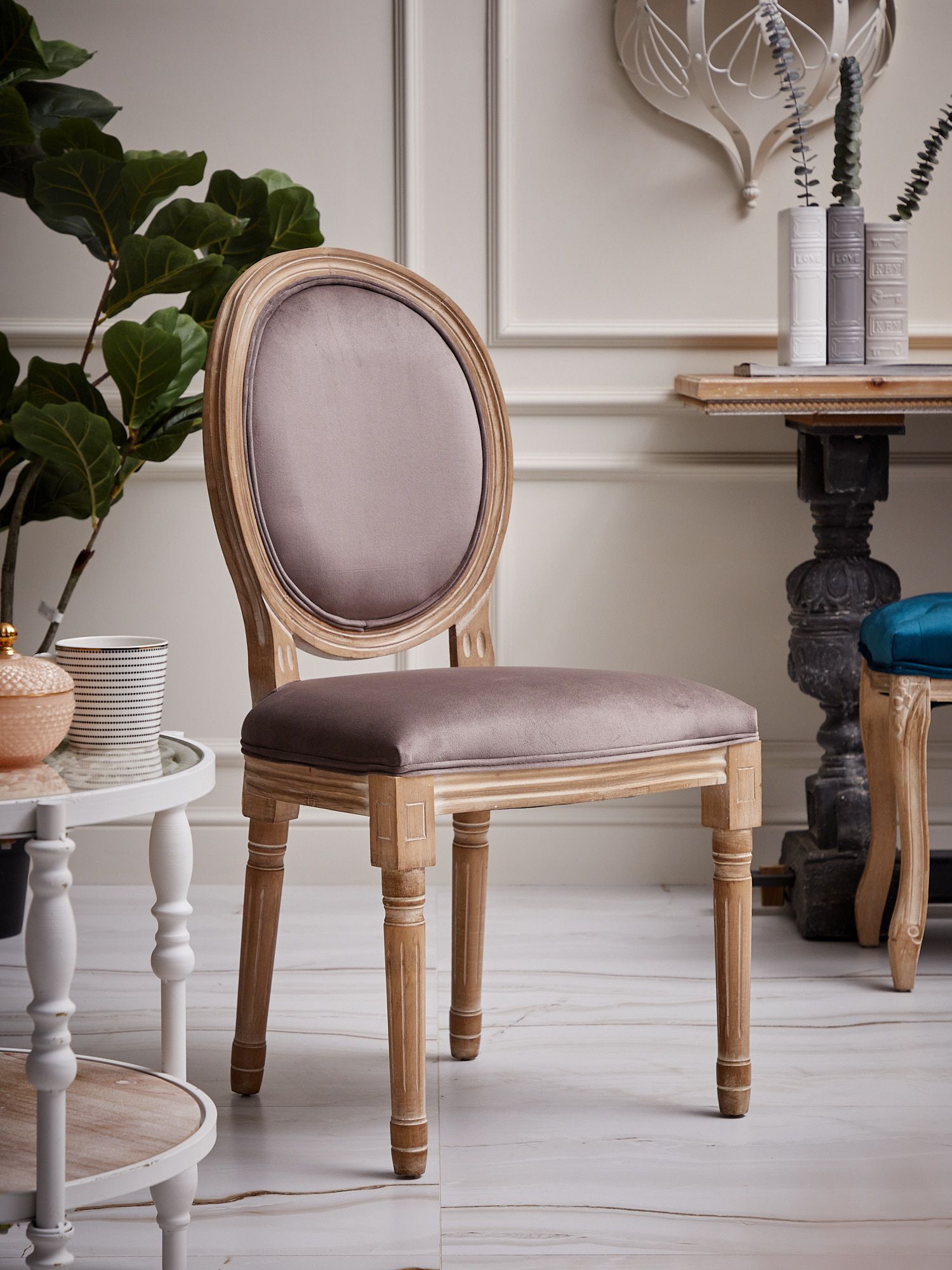 Изысканный стул в классическом стиле, выполненный из натурального дерева с обивкой из велюровой ткани. Богатый образ этого изделия встретит ваших гостей с величием и гостеприимством. Поверхность деревянного каркаса выполнена с признаками искусственного состаривания и декорирована тонким слоем матового лака, тем самым визуально подчеркивая принадлежность к ручной работе.