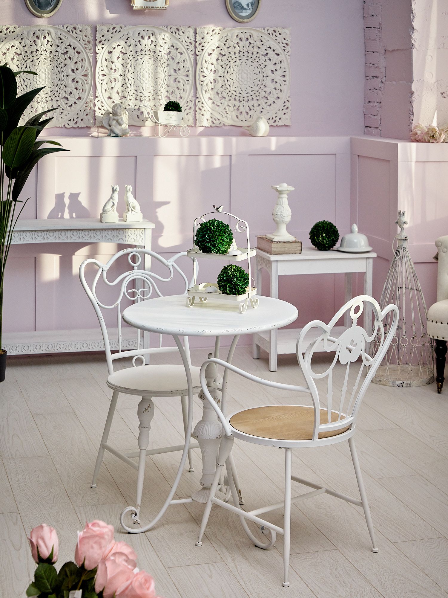 Кованный стул в прованском стиле создаст уютный, светлый и безмятежный образ в интерьере вашего дома. Разместите изделие в гостиной, кухне, беседке, на веранде или просто в летнем саду, изгибы формы, в сочетании с другими предметами из этой коллекции, восхитят ваших гостей. Поверхностные потертости и неровности с эффектом реставрации, трещинки и сколы краски на изделии характеризуют индивидуальный подход к производству каждого предмета, создавая задуманный дизайнером образ ушедших эпох.