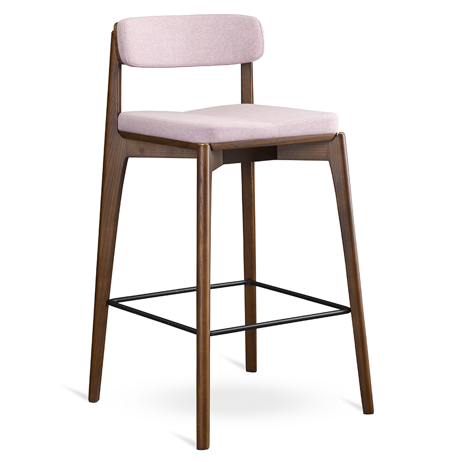 Материалы: массив ясеня, фанера, 100%, полиуретан, 100%, полиэстер, сталь. Размеры: 52х55х93 см. Высота сиденья: 69 см. Ширина сиденья: 39 см. Глубина сиденья: 37 см. Высота спинки: 23 см. Ширина спинки: 37 см. Высота подножки: 25 см. Максимальная нагрузка: 136 кг. Цвет основания: орех. Цвет обивки: розовый.