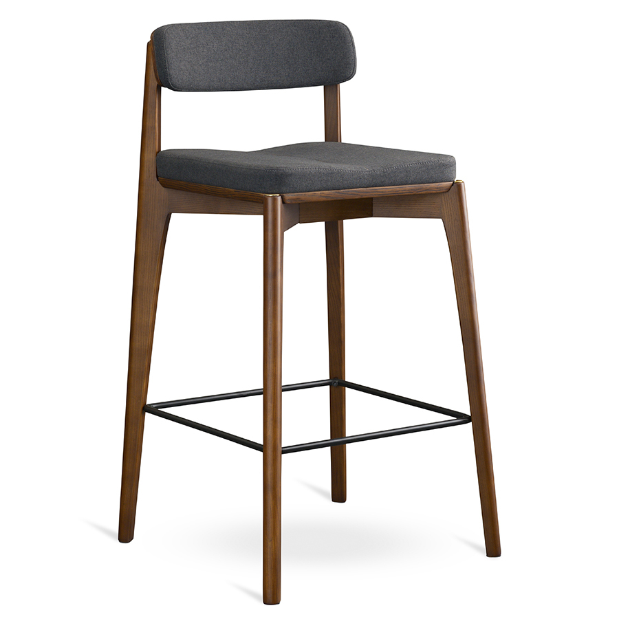 Материалы: массив ясеня, фанера, 100%, полиуретан, 100%, полиэстер, сталь. Размеры: 52х55х93 см. Высота сиденья: 69 см. Ширина сиденья: 39 см. Глубина сиденья: 37 см. Высота спинки: 23 см. Ширина спинки: 37 см. Высота подножки: 25 см. Максимальная нагрузка: 136 кг. Цвет основания: орех. Цвет обивки: темно-серый.