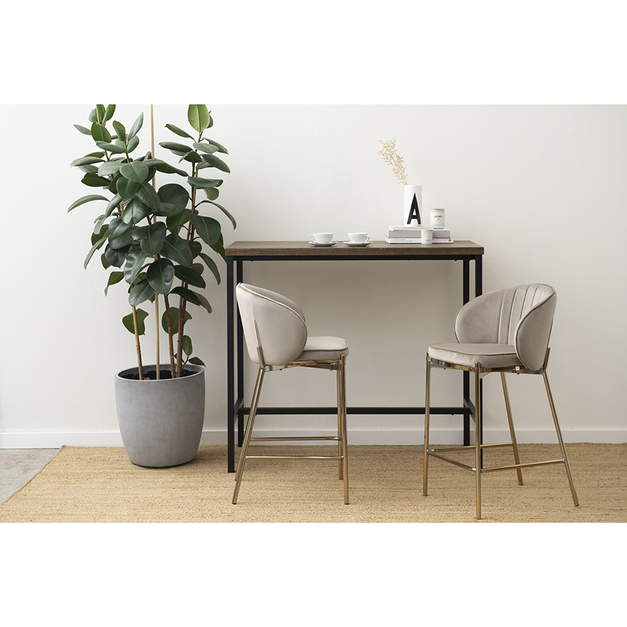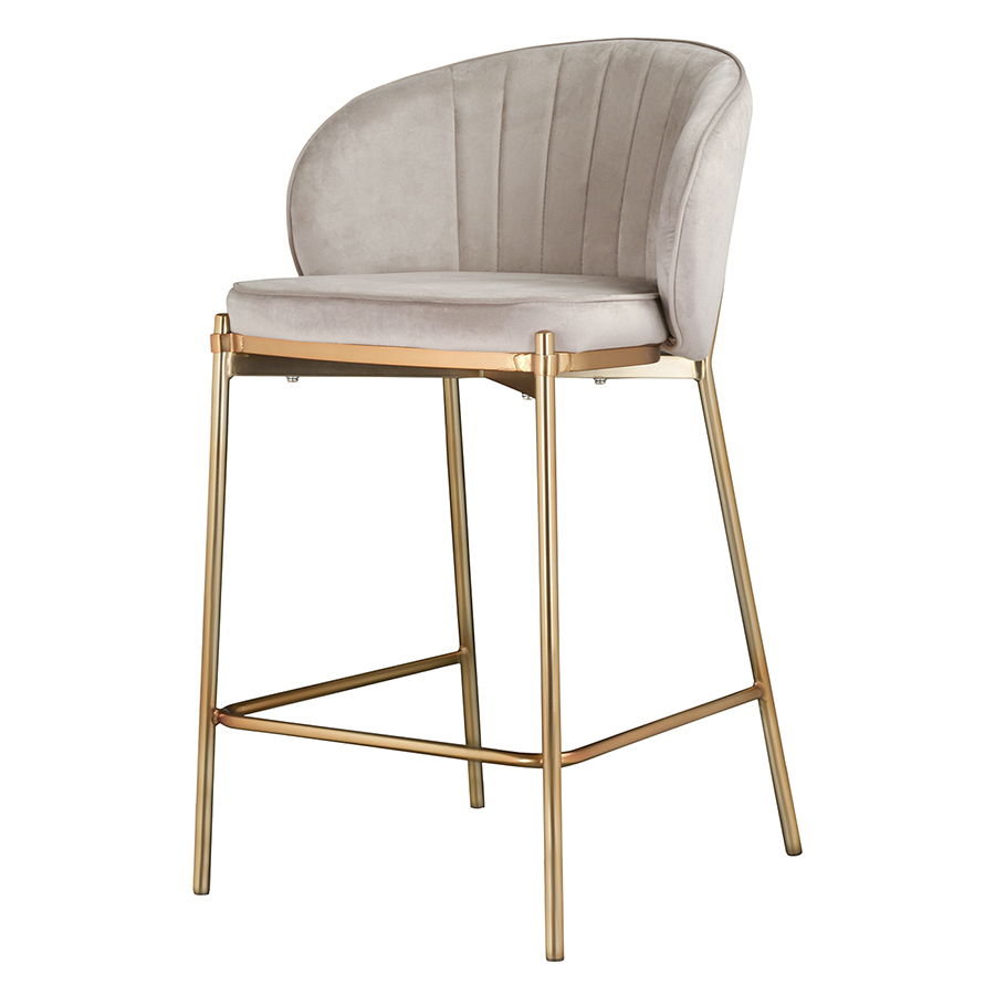 Комфорт во время отдыха на полубарном стуле создается за счет мягкого сиденья с наполнителем из пенополиуретана и высокой закругленной спинки. Обивка из бархатистого велюра, украшенная декоративной строчкой, придает модели особый шарм. Эстетический потенциал материала настолько высок, что ему сложно найти конкурентов. Помимо презентабельного вида и приятных тактильных ощущений, ткань обладает хорошими эксплуатационными характеристиками, такими как прочность, износоустойчивость и долговечность. Ножки мебели выполнены из железа с гальваническим покрытием, что обеспечивает конструкции надежность.