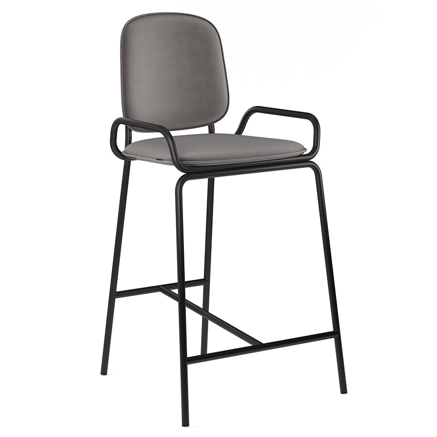 Стул полубарный Double Frame имеет удобную посадку за счет высокой спинки и широкого основания. Ножки плавно переходят в подлокотники и в нижней части соединяются металлической рамой, которая служит подставкой для ног. Такое дизайнерское решение создает дополнительный комфорт во время сидения.