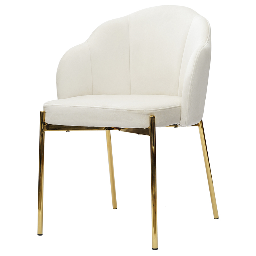 Необычная форма спинки, ножки с золотистым покрытием и обивка из бархатистого велюра обеспечивают модели красивый и изысканный вид. Ткань дарит приятные тактильные ощущения, при этом обладает высокой плотностью и износостойкостью. Поролоновый наполнитель делает стул мягким, а ножки из стали гарантируют конструкции надежность и устойчивость. Максимальный комфорт при сидении достигается за счет сплошной спинки с небольшим наклоном.