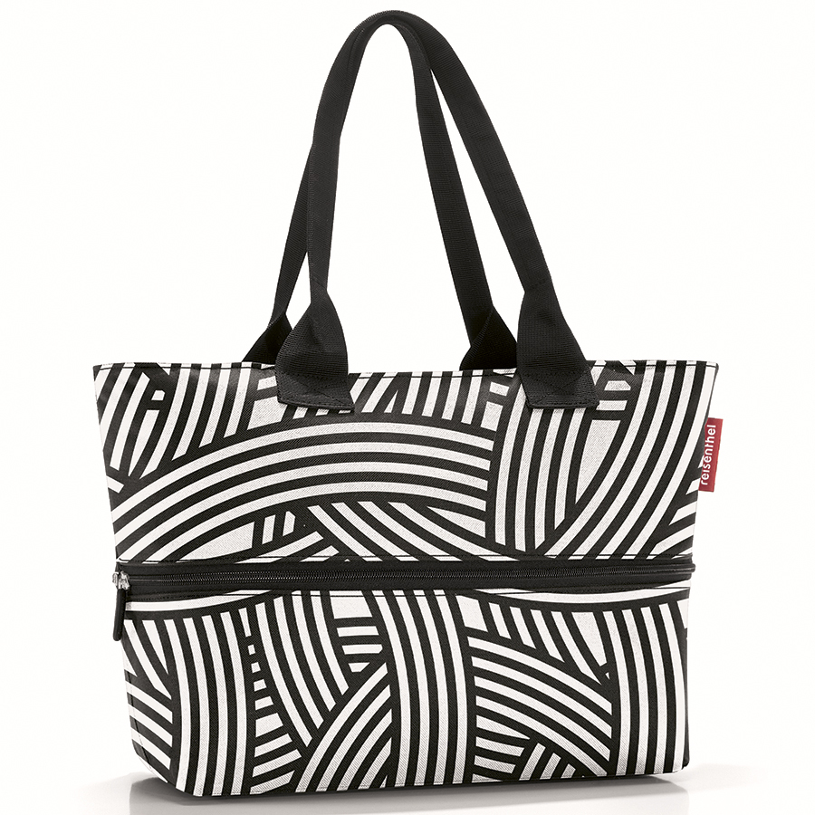 "Shopper E1 – это дорожная, прогулочная и пляжная сумка одновременно. Коллекция Zebra – это сумки с черно-белым полосатым принтом, классическим и современным, сдержанным и вызывающим одновременно. Принт можно комбинировать как с яркими, так и со сдержанными тонами.
