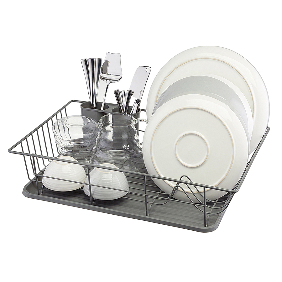 "Сушилка Hoem представляет собой эргономичную конструкцию с отделениями для посуды и кухонных принадлежностей. Каркас имеет вид железной сетки со специальными изгибами, позволяющими удобно разместить тарелки и другие емкости. Поддон для воды выполнен из практичного пластика, который легко очищается от загрязнений. Предусмотрены специальные съемные контейнеры для столовых приборов.