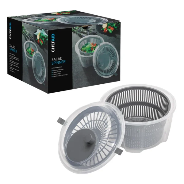 Сушилка - центрифуга для салата Chef Aid, гарантирует, что листья зелени останутся хрустящими и вкусными после мытья. Инновационный дизайн позволяет вам легко высушить салат, гарантируя, что лишняя вода не пропитает хлеб вашего сэндвича или не соберется на дне вашей салатницы.